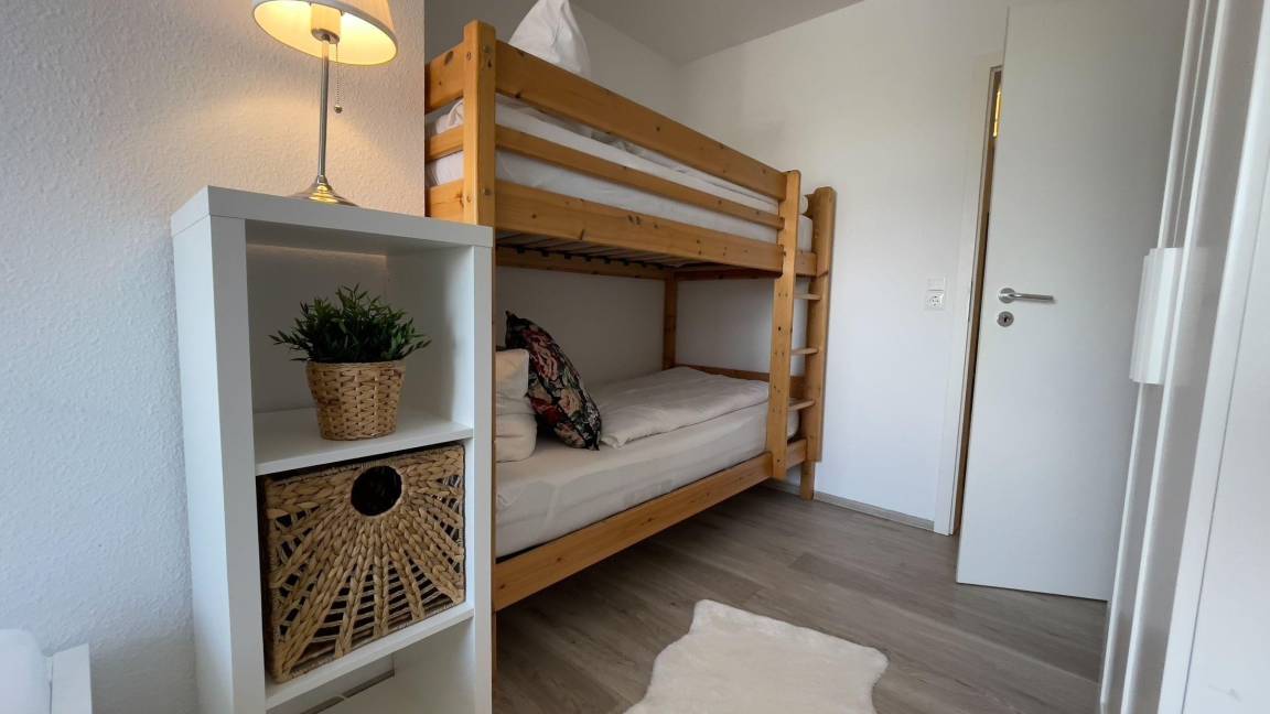 Die Ferienwohnung B1.4 in Sahlenburg bietet Platz für bis zu 7 Personen und überzeugt durch ihre praktische Raumaufteilung. Die offene Wohnküche ist voll ausgestattet und erleichtert das Zubereiten von Speisen. Ein gemütliches Sofa lädt im Wohnbereich zum Entspannen ein. Zwei separate Schlafzimmer, eines mit einem Doppelbett und das andere mit einem Einzelbett sowie einem Etagenbett, garantieren ruhige Nächte. Zudem steht ein Schlafsofa zur Verfügung, das zusätzlichen Platz bietet. Das Badezimmer ist mit einer ebenerdigen Dusche ausgestattet und sorgt für Komfort. Zu den gemeinschaftlich nutzbaren Einrichtungen im Haus gehören ein Fahrradkeller sowie eine Münzwaschmaschine und ein Münztrockner. Der Strand ist nur 200 Meter entfernt, was die Ferienwohnung zu einem idealen Ausgangspunkt für einen entspannten Nordsee-Urlaub macht.