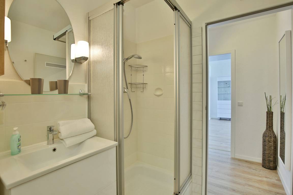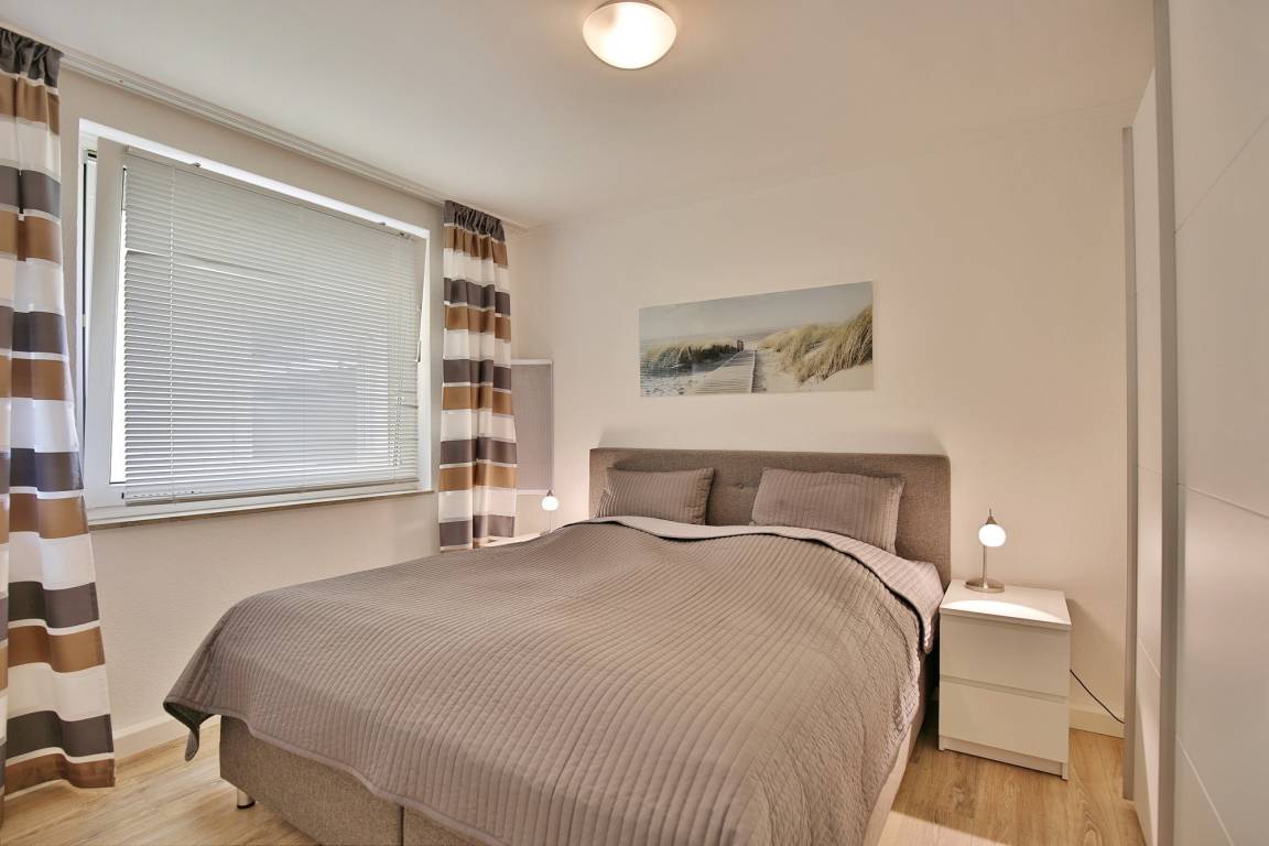 Erholsamen Schlaf finden Sie im separaten Schlafzimmer mit komfortablem Doppelbett und einem zusätzlichen Flachbildfernseher. Die Außenjalousie im separaten Schlafzimmer gewährleistet, dass Sie nicht von der Morgensonne geweckt werden. Darüber hinaus ist die Wohnung mit einem Badezimmer mit Dusche, WC, Fön und Fenster zum Belüften ausgestattet. Ferienwohnung 514 ist ein KFZ-Stellplatz zugeordnet.