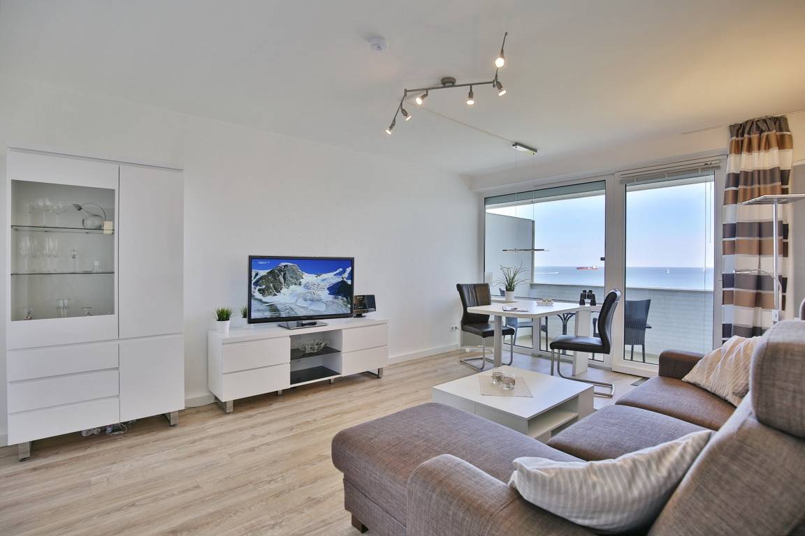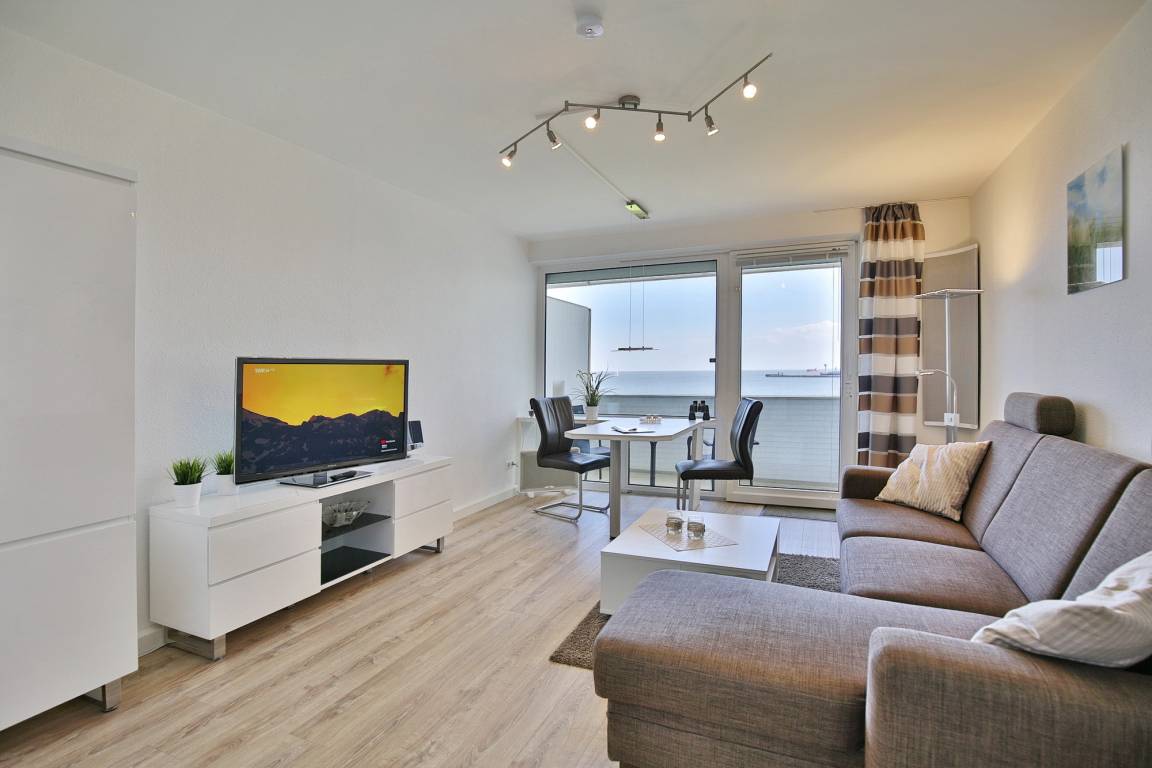 Schiff Ahoi. Was für eine Kulisse! Die liebevoll eingerichtete Ferienwohnung mit separatem Schlafzimmer und komfortablem Boxspringbett bietet einen spektakulären Meerblick aus der 5. Etage. Schon beim allmorgendlichen Kaffee genießen Sie den abwechslungsreichen Ausblick auf den Weltschifffahrtsweg. Hier kommt kein Schiff ungesehen vorbei.