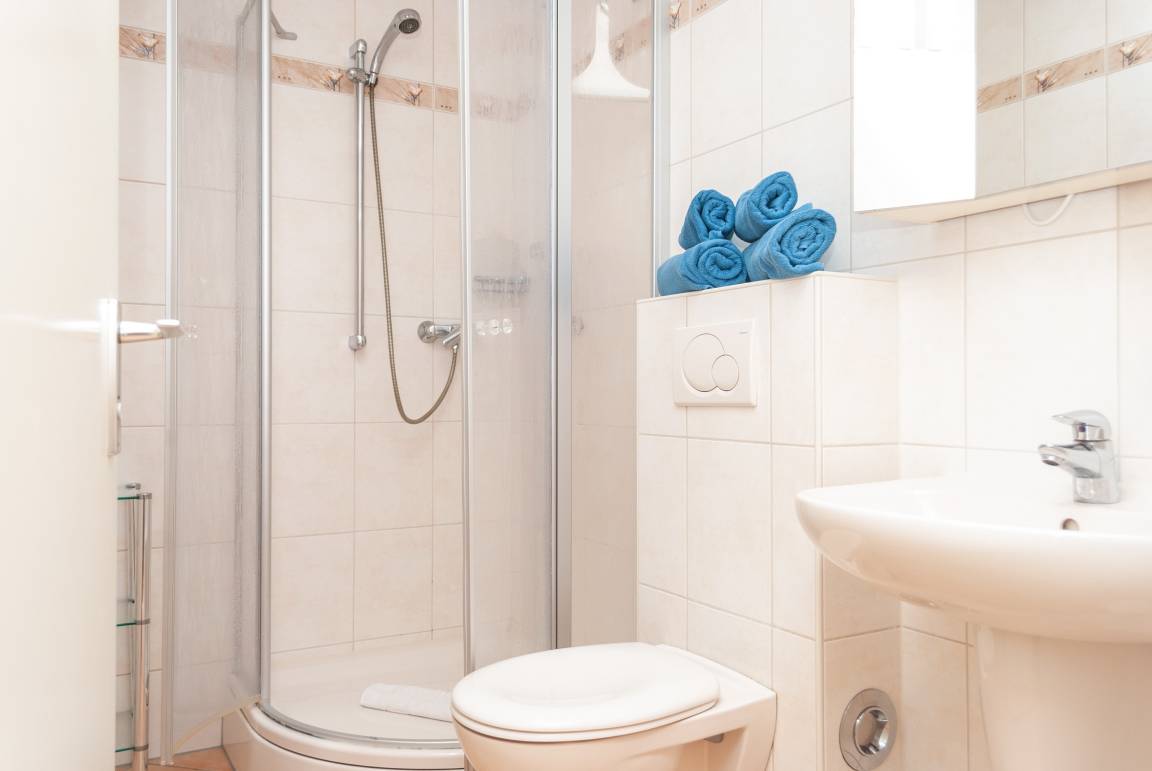 Das Apartment besteht aus einem Schlafzimmer mit 1 Doppelbett , einem Wohnbereich und zusätzlichem Etagenbett in einer Nische im Flur für 2 Personen und einem Badezimmer mit Dusche sowie WC. Die Ferienwohnung beinhaltet eine voll ausgestattete offene Küche.