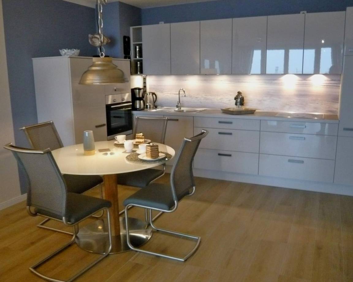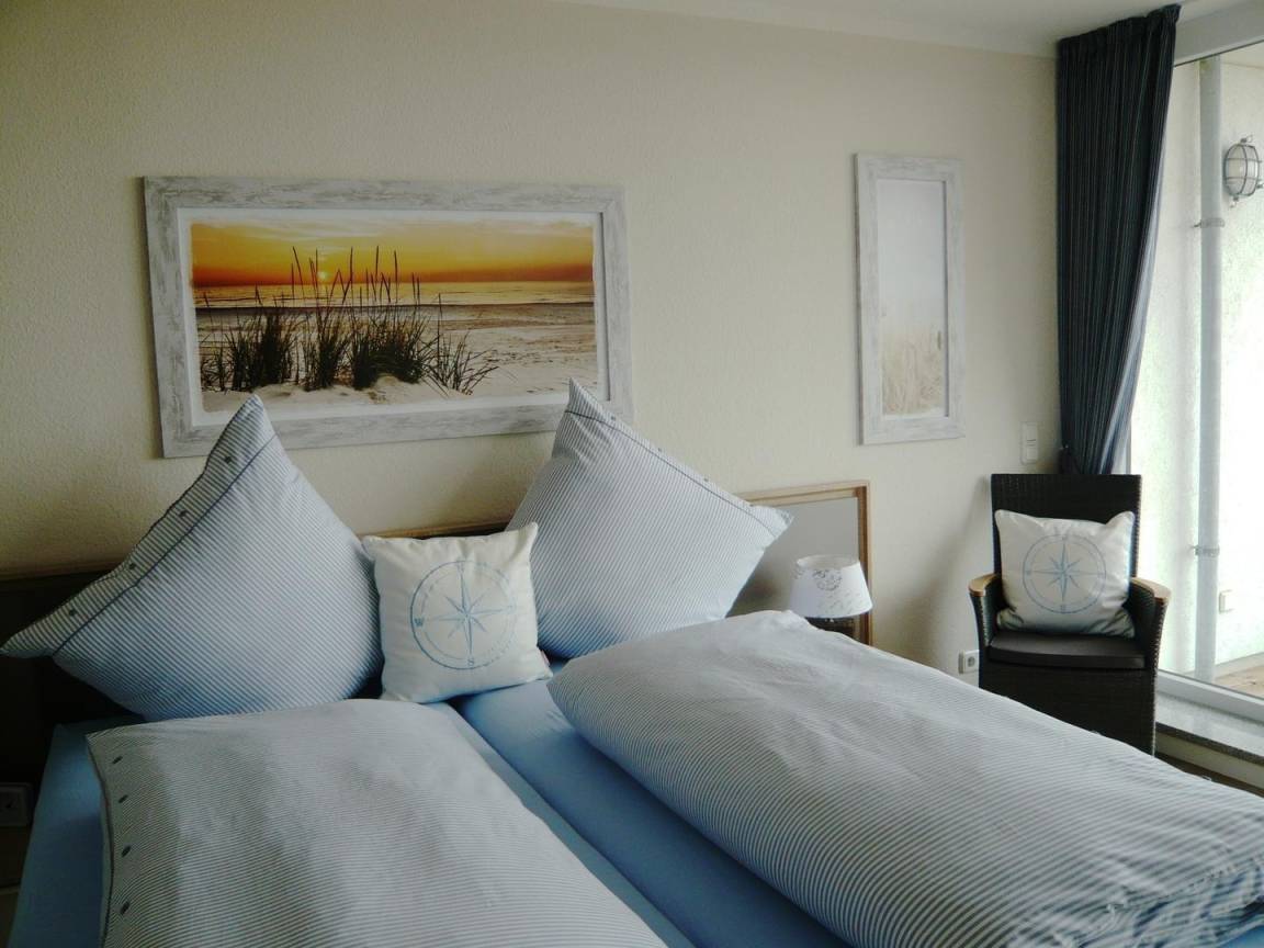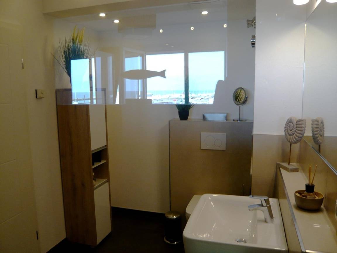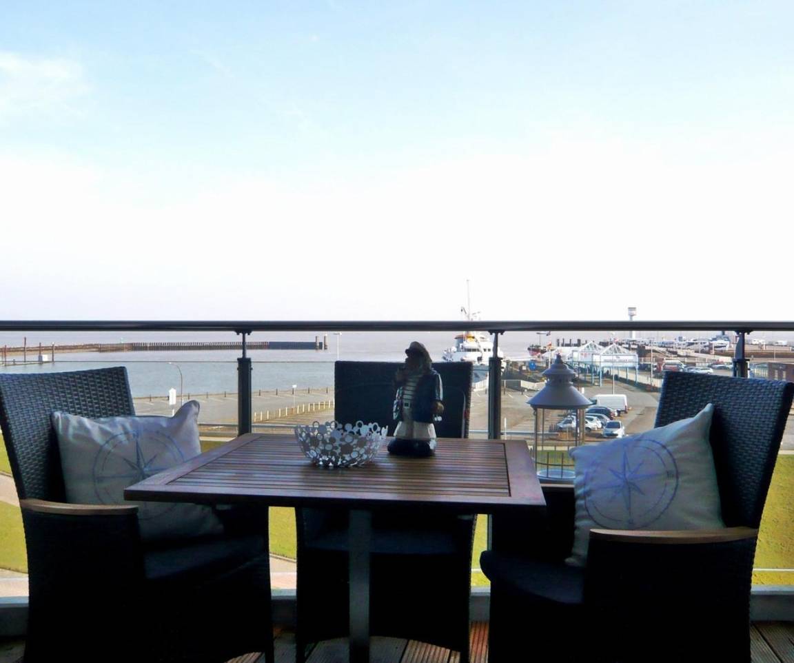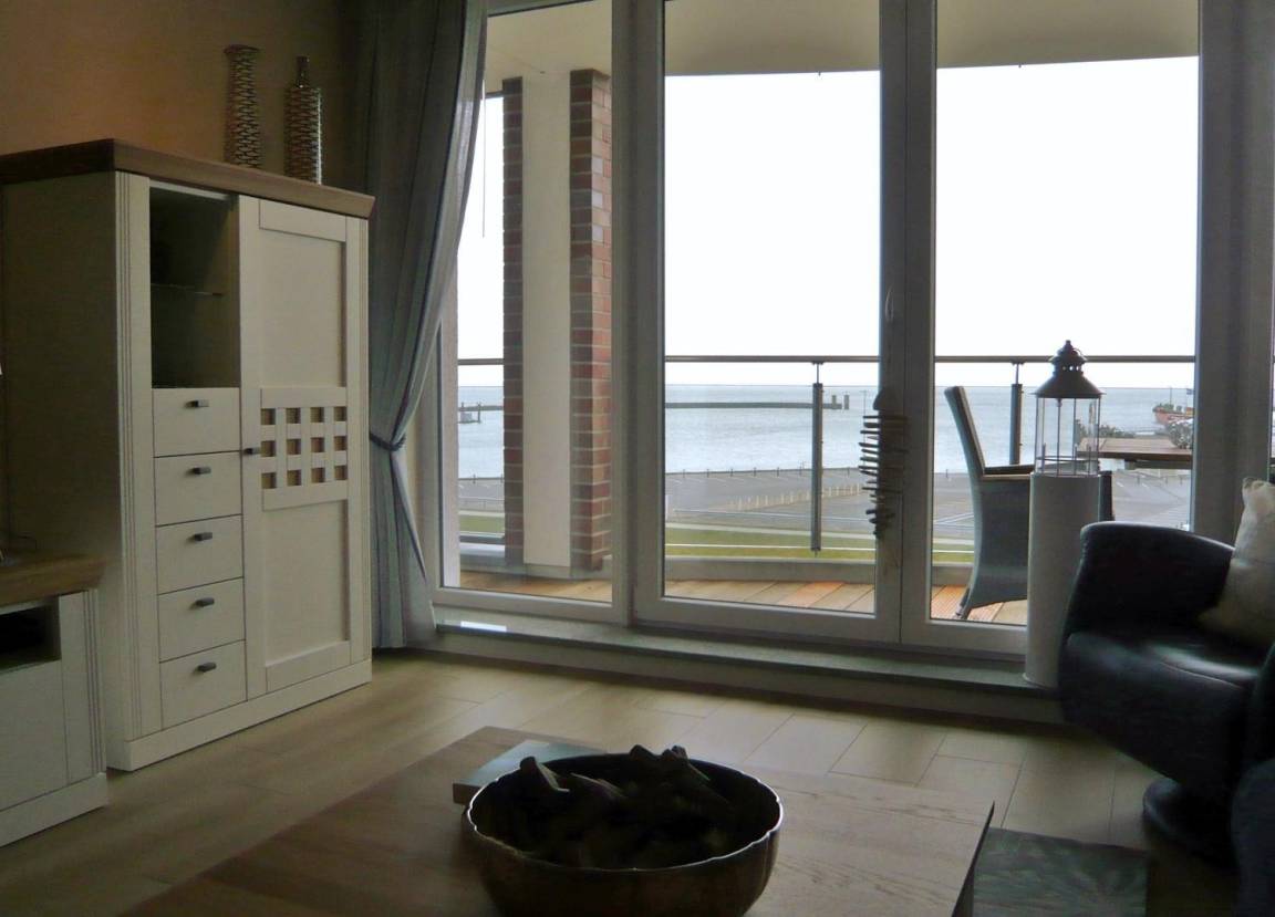 Die luxuriöse Nichtraucherwohnung mit 65 m² Wohnfläche liegt in der 3. Etage und verfügt über einen großzügigen Balkon mit Panoramablick auf die Elbmündung. Die hochwertige, maritime Einrichtung sorgt für echtes Urlaubsgefühl.