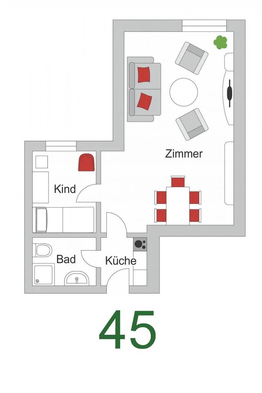 40 m² Ferienwohnung ∙ 1 Schlafzimmer ∙ 4 Gäste