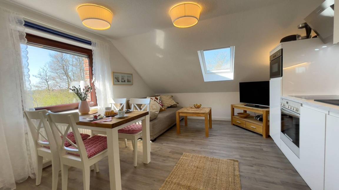 Für Ausflüge bieten sich der nahegelegene Strand sowie die charmanten Küstenorte an, die mit Restaurants und Geschäften locken. Die Anreise zur Unterkunft gestaltet sich unkompliziert, da sie gut erreichbar ist. Genießen Sie die frische Nordseeluft und erleben Sie erholsame Tage in dieser einladenden Ferienwohnung.
