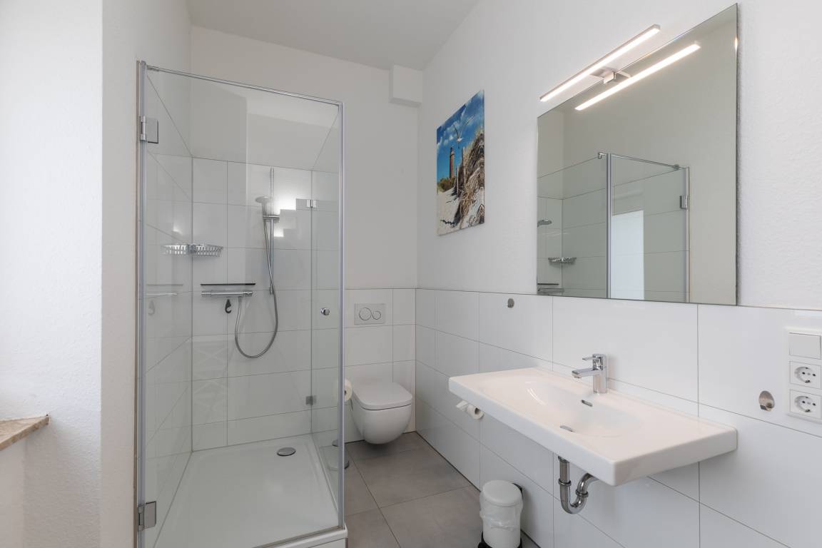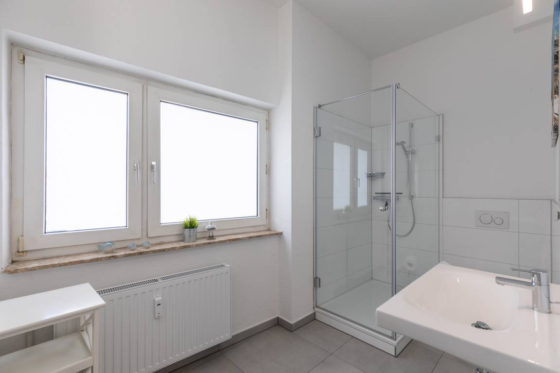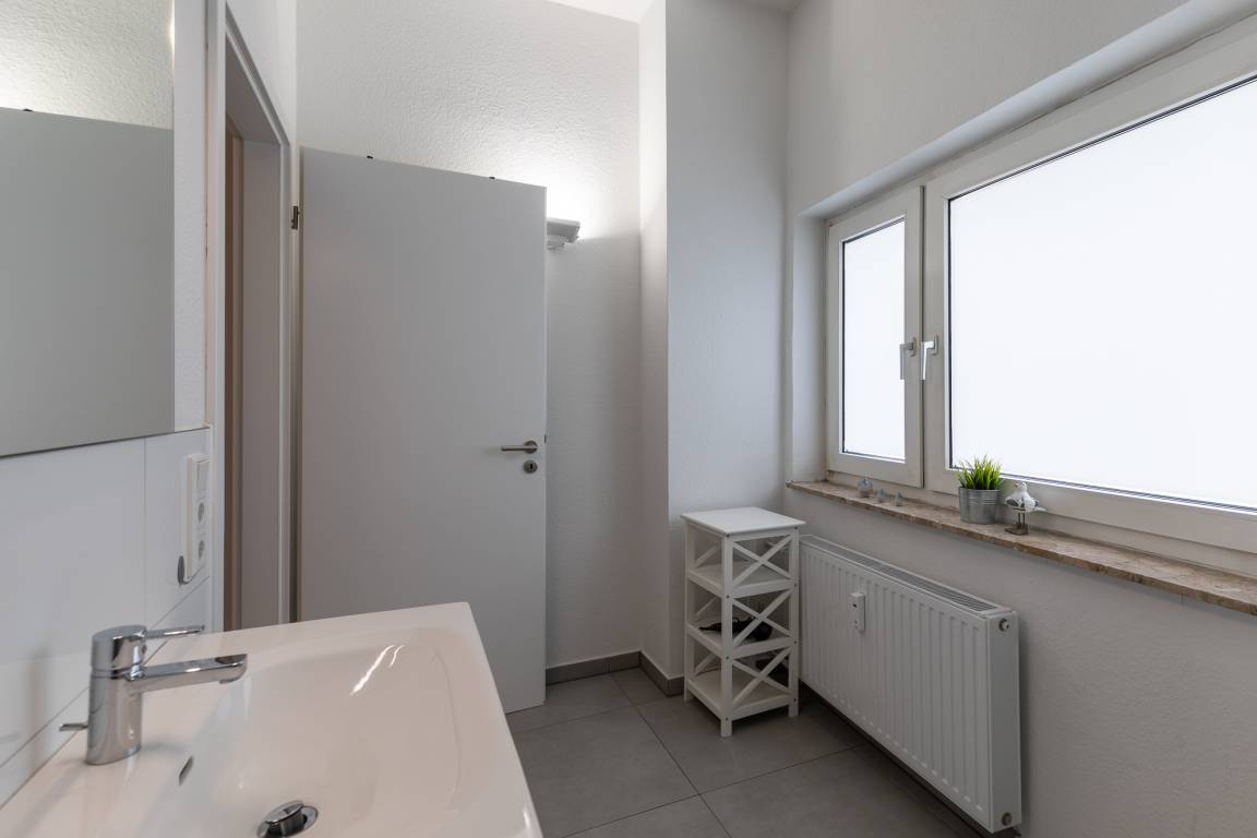 Die 3 Zimmerwohnung mit ca. 56 m² in der 1. Etage ist für bis zu 3 Personen ausgestattet. Schlafzimmer 1 mit Doppelbett, Kleiderschrank und TV, Schlafzimmer 2 mit Einzelbett, Regal und Zugang zum Balkon, großes Wohnzimmer mit gemütlicher Sitzecke, 2 Sessel und TV, moderne Einbauküche (Cerankochfeld, Backofen, Dunstabzugshaube, Geschirrspüler, Kühlschrank, Wasserkocher, Kaffeemaschine, Toaster und allem was zu einer Küche gehört), 1 Bad mit Dusche, WC und Fenster, 1 Balkon mit Balkonmöbel.