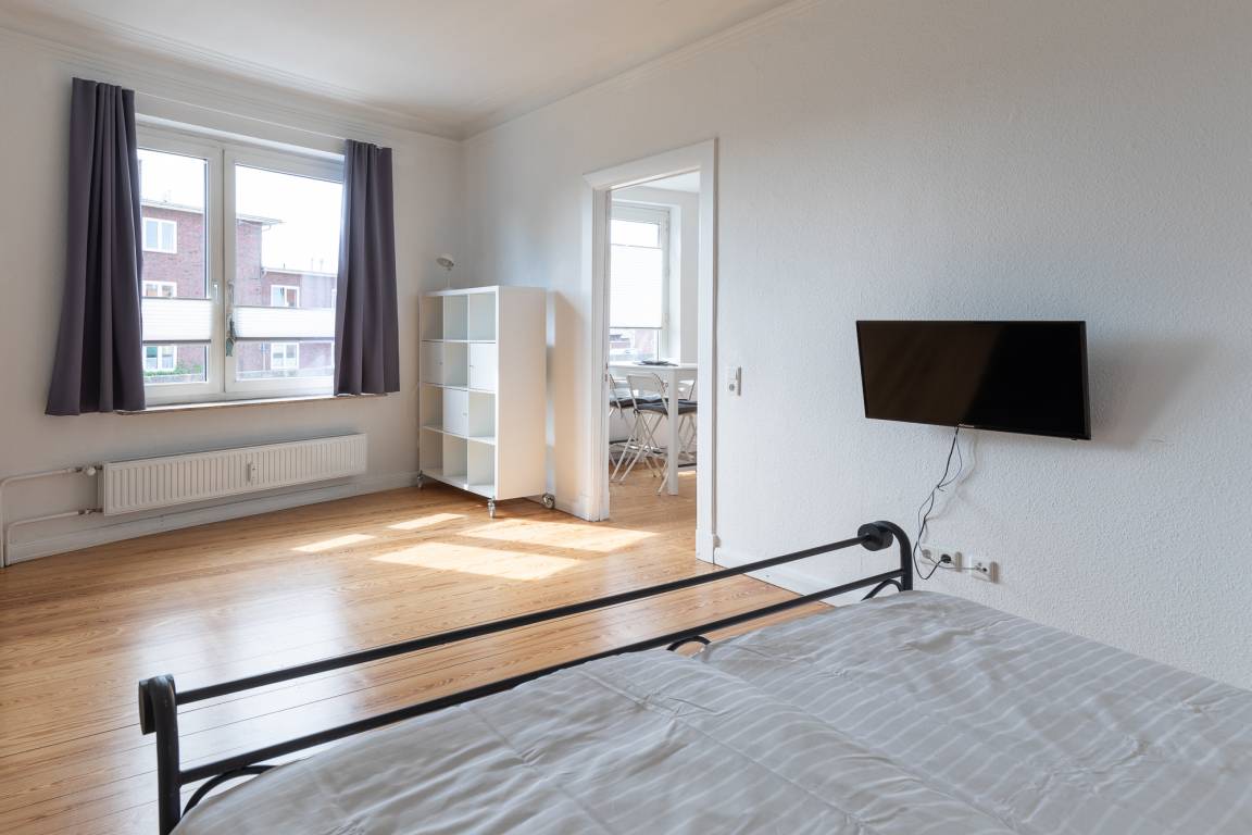 Die modern ausgestattete Wohnung befindet sich in unmittelbarer Nähe der alten Liebe der Innenstand mit seinen Einkaufsmöglichkeiten und Restaurants. Die Elbe und die Alte Liebe sind nur wenige Gehminuten entfernt.