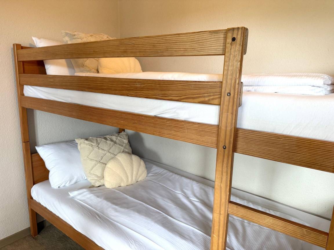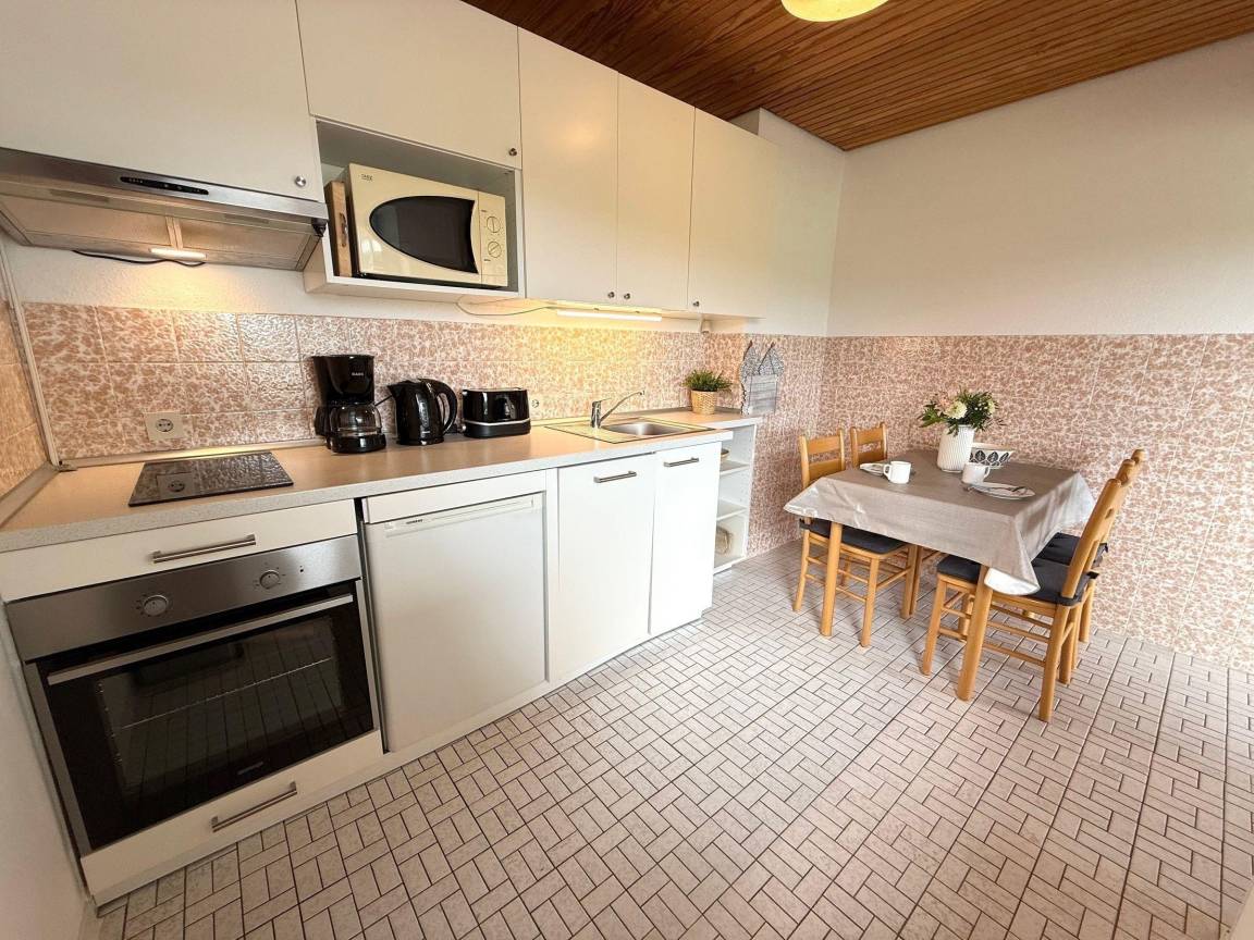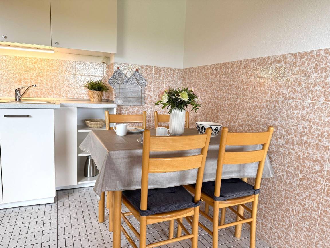 Die Ferienwohnung in Cuxhaven - Sahlenburg überzeugt mit 42 m² und eignet sich ideal für bis zu vier Personen. Sie befindet sich im 2. Stock eines Apartmenthauses, das bequem mit dem Aufzug erreichbar ist. Das Nichtraucher-Apartment umfasst einen hellen Wohnbereich, der nahtlos an die offene, moderne Küchenzeile angrenzt. Hier stehen ein 2-Platten-Herd, ein Backofen, eine Spülmaschine und weitere Küchengeräte zur Verfügung. Ein separates Schlafzimmer mit Stockbett sowie eine abtrennbare Nische mit Doppelbett bieten Schlafmöglichkeiten. Das Bad ist mit einer Badewanne ausgestattet. Teilweise gemeinsam nutzbare Einrichtungen umfassen einen beheizten Indoor-Pool, einen Wellnessbereich mit Sauna und Dampfbad, sowie Waschmaschinen und Trockner. Die Lage ist günstig, nur 400 Meter vom Sandstrand entfernt.