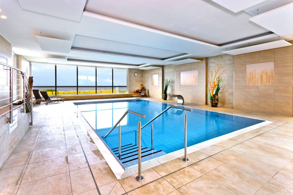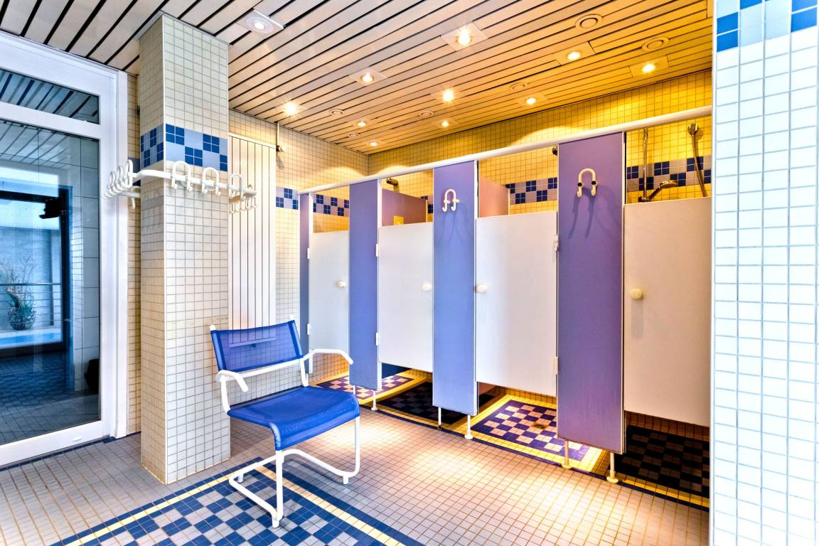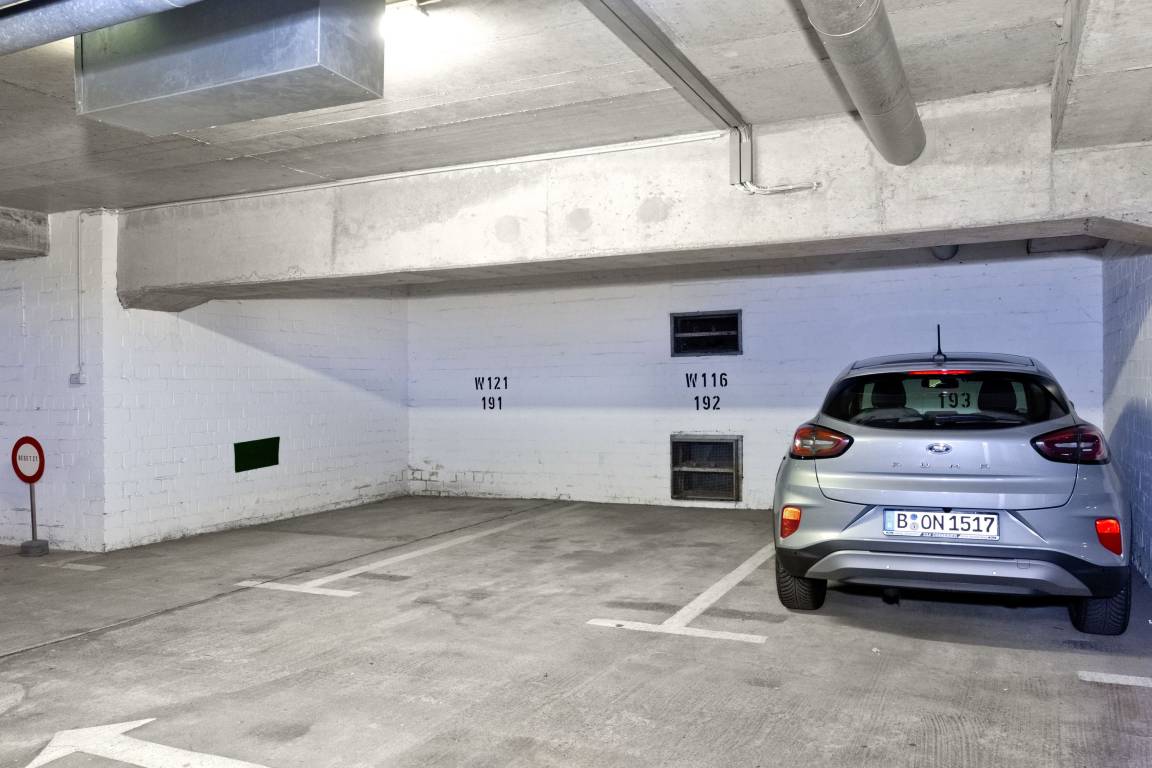 Für alle, die gerne aktiv sind, stehen ein gemeinschaftliches, großes Schwimmbad, Sauna und Solarium 24 Stunden am Tag zur Verfügung. Zur Wohnung gehört weiter ein reservierter Pkw-Stellplatz (W121/191) in der Tiefgarage (Einfahrtshöhe 2,1m).