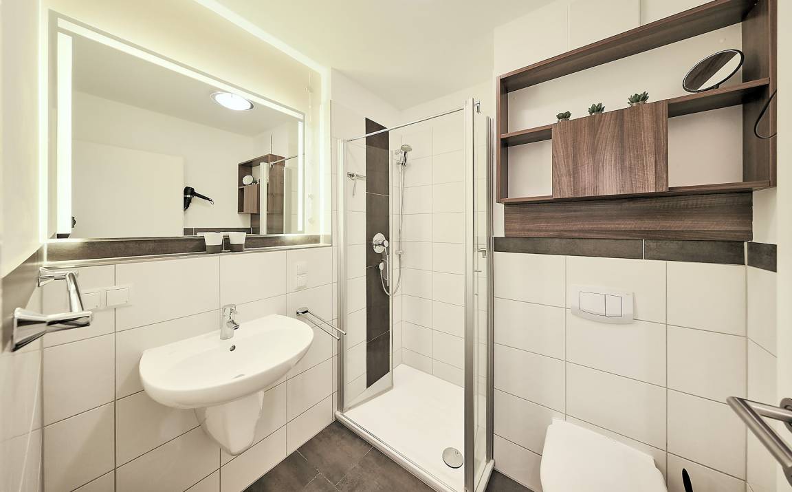Zwei moderne Bäder – jeweils mit Dusche [&] WC – super praktisch bei mehreren Mitreisenden