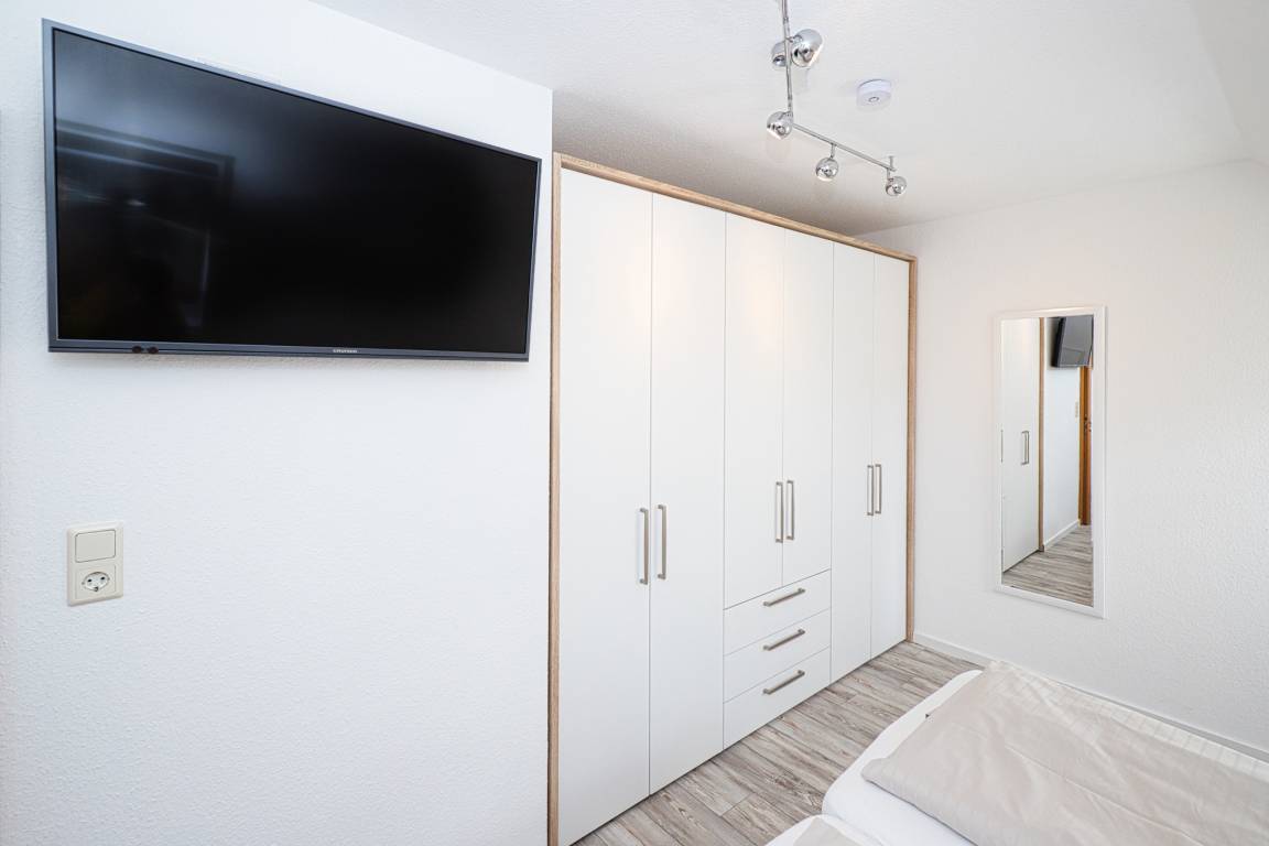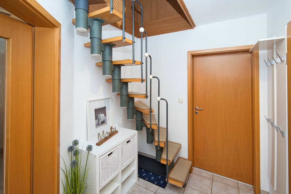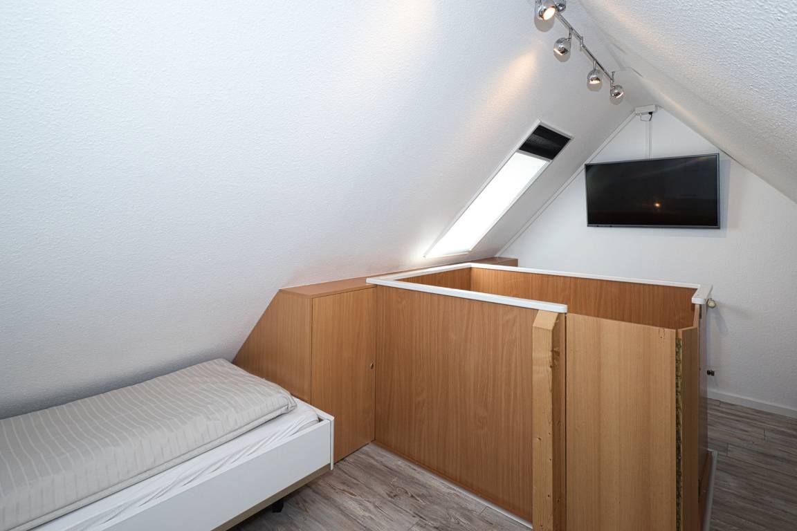 Die Ferienwohnung präsentiert sich in zeitgemäßem Stil und ist perfekt auf die Bedürfnisse von bis zu 4 Personen abgestimmt. Im 1. Obergeschoss erwartet Sie ein separates Schlafzimmer mit einem gemütlichen Doppelbett. Im ausgebauten Dachgeschoss finden Sie einen weiteren behaglichen Schlafbereich mit 2 Einzelbetten (90cmx200cm), ideal für die "jungen" Urlaubsgäste.