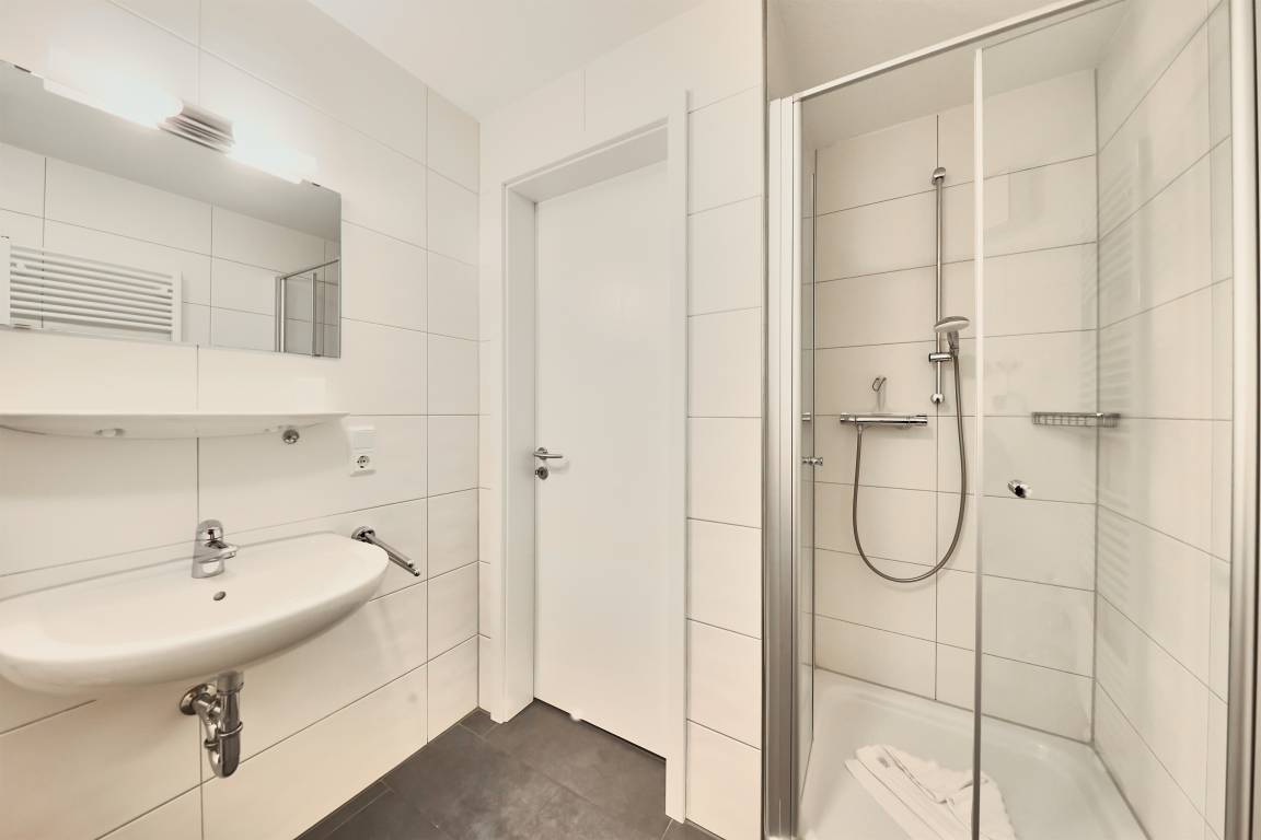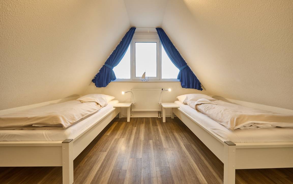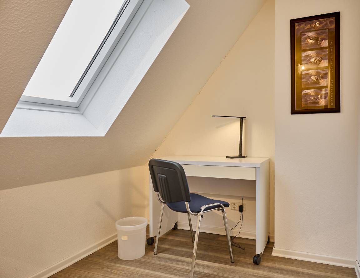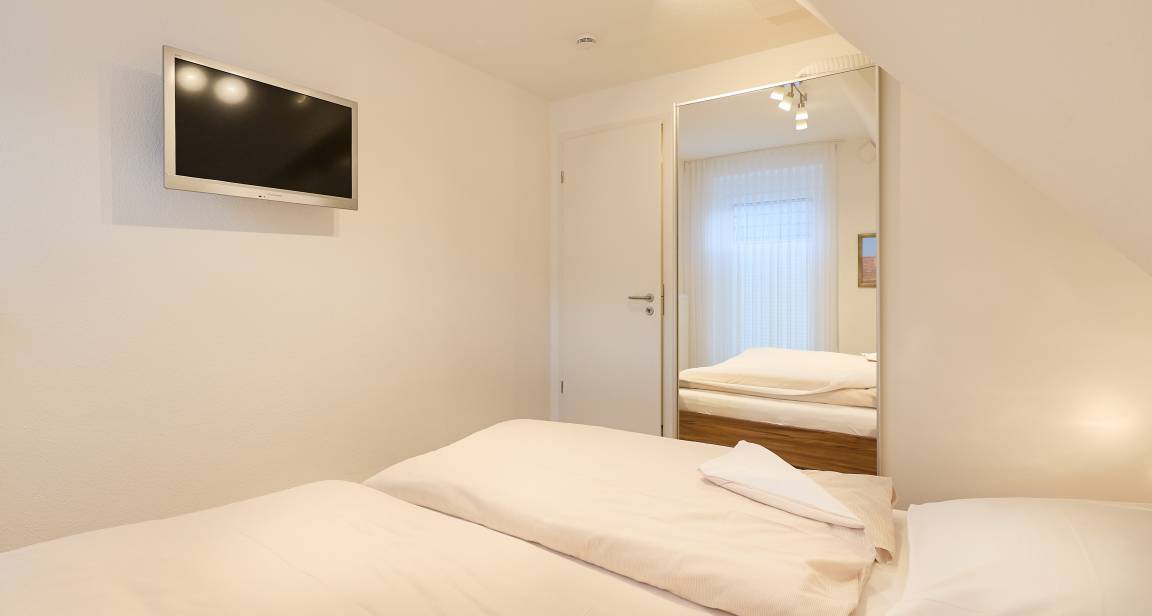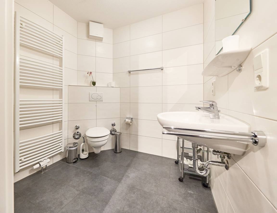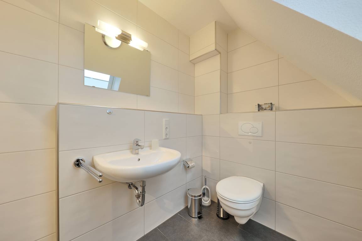Des Weiteren beherbergt die Wohnung ein geräumiges und stilvolles Duschbad mit WC. Im Dachgeschoss erwartet Sie ein weiteres Schlafzimmer mit zwei Einzelbetten, ein modernes WC mit Waschtisch sowie eine gemütliche Leseecke, ein Schreibtisch mit Stuhl und kostenloser WLAN-Zugang für entspanntes Surfen im Internet. Die gesamte Wohnung ist mit einem bodenfreundlichen Belag ausgestattet, der auch Allergikern gerecht wird. In den beiden Schlafzimmern und im Wohnbereich sind hochwertige HD-TVs installiert.