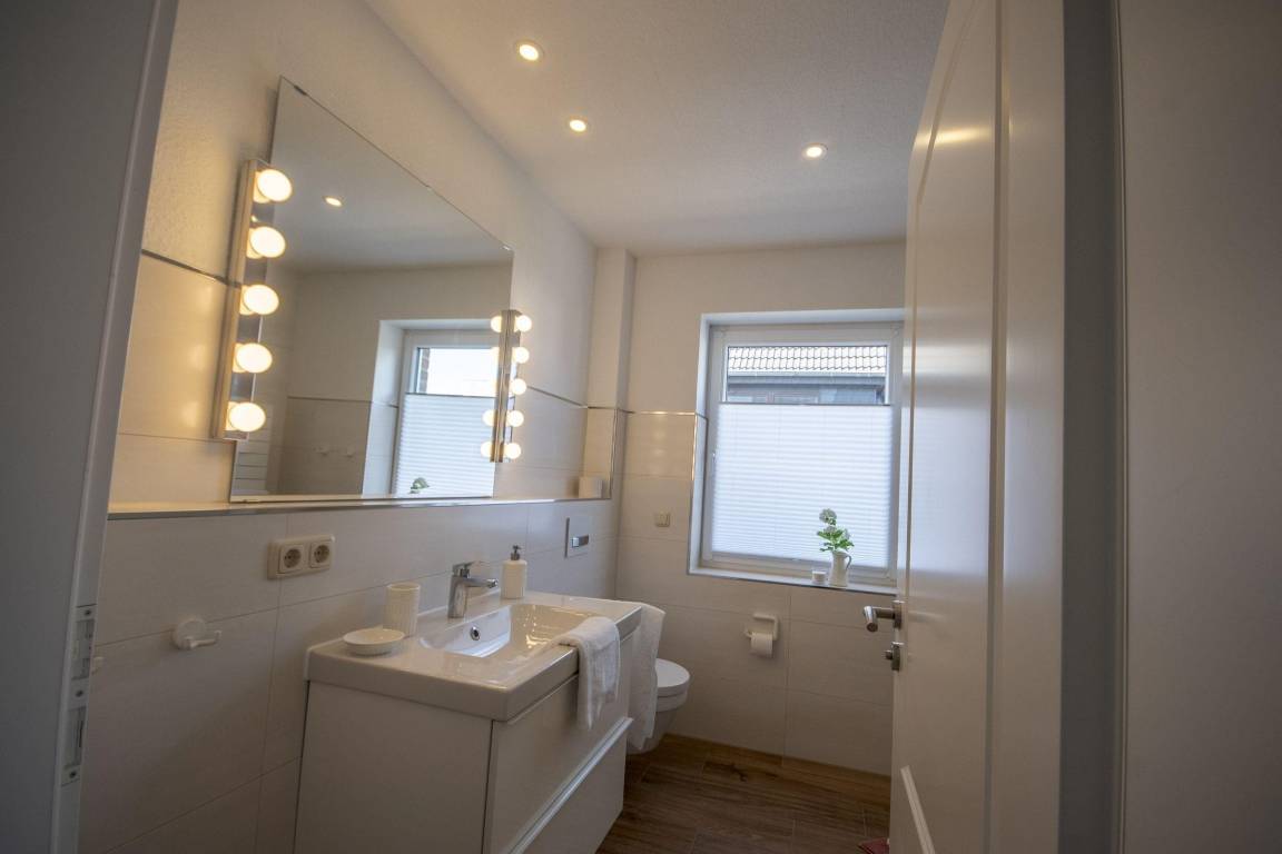 Die exklusive Ferienwohnung in der 1. Etage bietet Platz für bis zu 6 Personen und ist geschmackvoll im nordischen Stil eingerichtet. Sie verfügt über zwei separate Schlafzimmer, jedes mit einem großen Doppelbett und einem Flachbildschirm. Im gemütlichen Wohnbereich befindet sich eine Schlafcouch, die weiteren Platz für 2 Personen bietet. Das moderne Badezimmer ist mit einer großzügigen, bodengleichen Dusche ausgestattet. Die offene Küchenzeile lässt mit Geräten wie Geschirrspüler, Induktionsherd, Mikrowelle, Backofen, Kaffeemaschine und Wasserkocher keine Wünsche offen. Zur Wohnung gehört ein eigener Balkon mit Möbeln, ideal für entspannte Stunden. Die zentrale Lage ermöglicht es, den schönen Sandstrand sowie den Ortskern von Duhnen in wenigen Gehminuten zu erreichen. Diese Wohnung vereint Komfort und modernes Design und stellt eine perfekte Basis für einen erholsamen Urlaub dar.