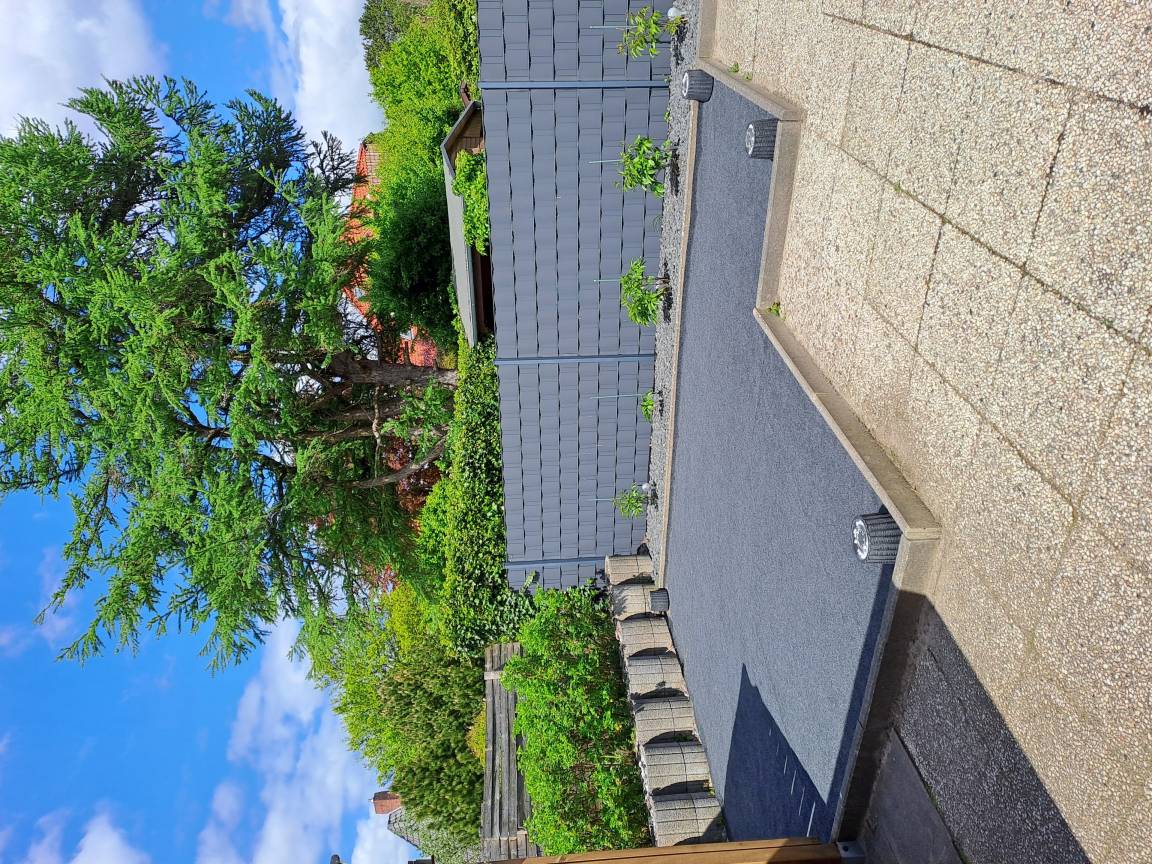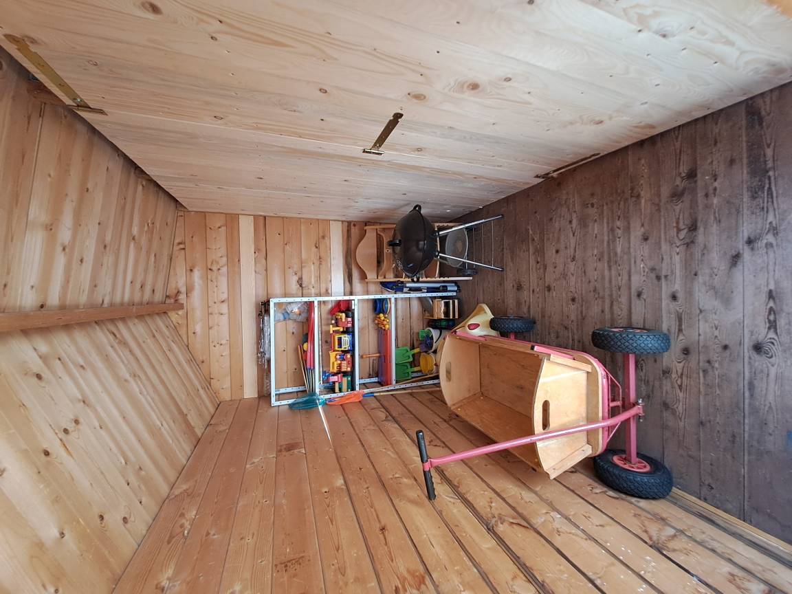 Hinter dem Haus erwartet Sie ein Abstellraum, der ideal für die Unterbringung von Fahrrädern oder anderen Utensilien ist. Genießen Sie auch die gepflasterte Terrasse rund um das Haus, die mit Sitzmöglichkeiten ausgestattet ist.