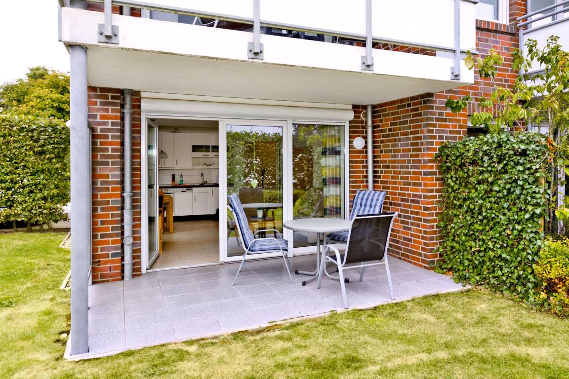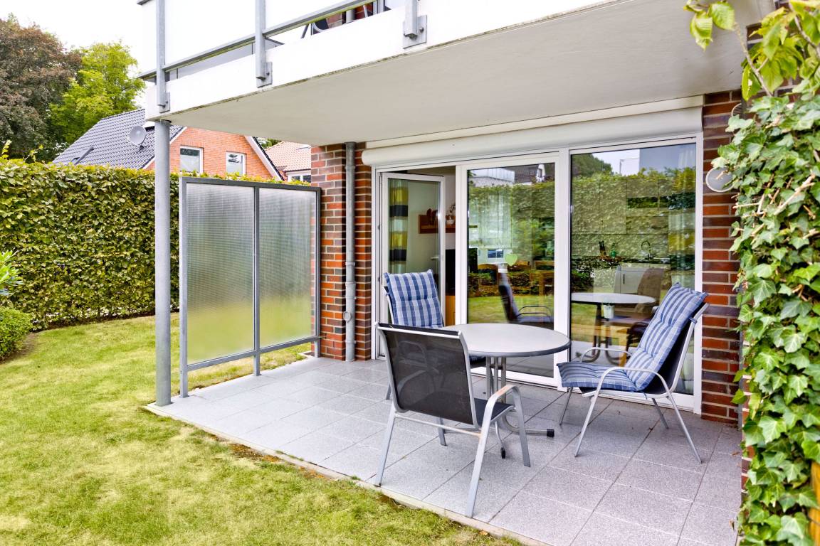 Schöne und vollständig ausgestattete Wohnung auf ca. 50m² bis 2 Pers., parterre mit Terrasse und Rasen (süd), 1 Schlafzimmer mit Einzelbetten (zusammengeschoben), Wohnzimmer, SAT-TV, W-LAN kostenlos, vollständige Küchenzeile mit Geschirrspüler, Mikrowelle, Backofen, Gefrierfach, Du/Wc mit ebenerdiger Dusche, Föhn, alle Räume mit Rollladen, Nichtraucher, Pkw-Stellplatz #3, keine Haustiere gestattet.