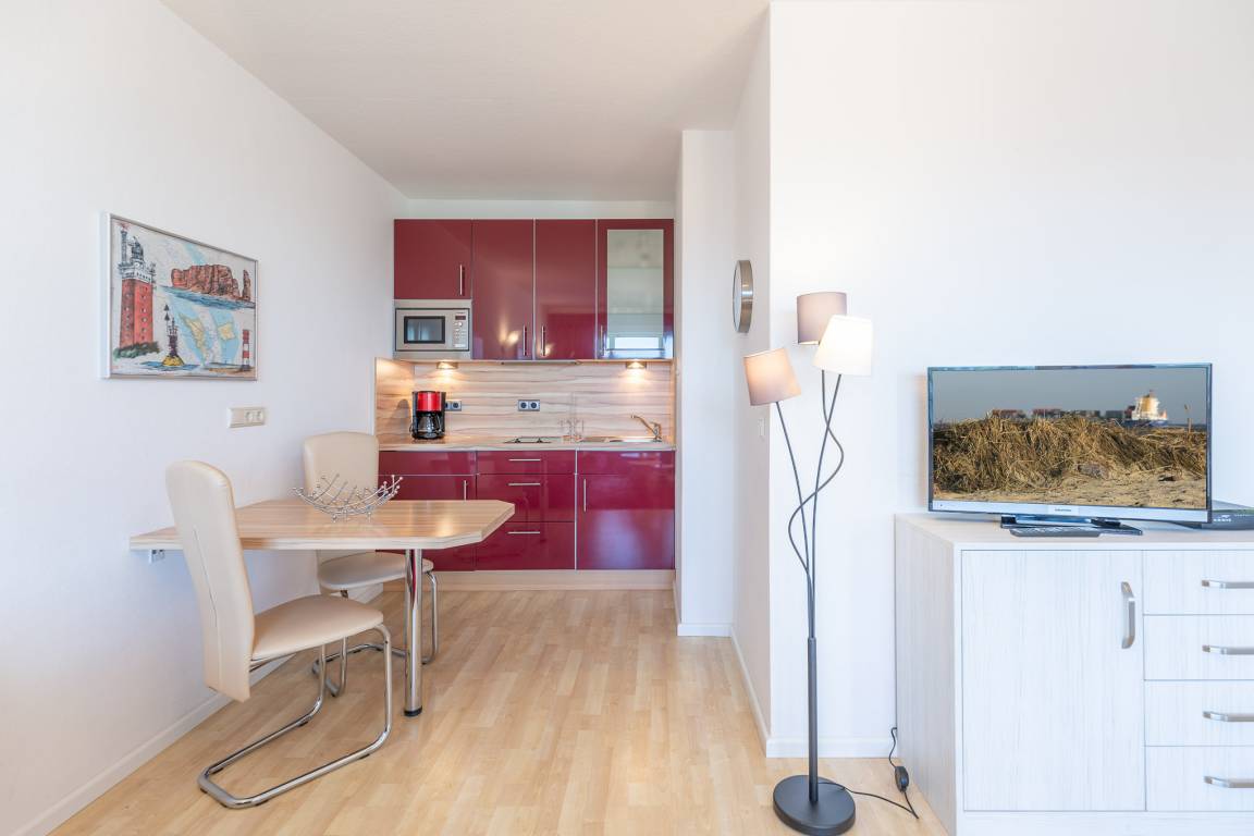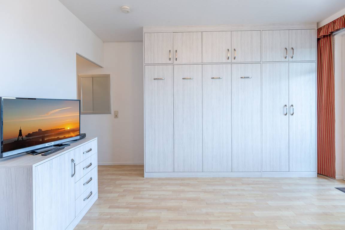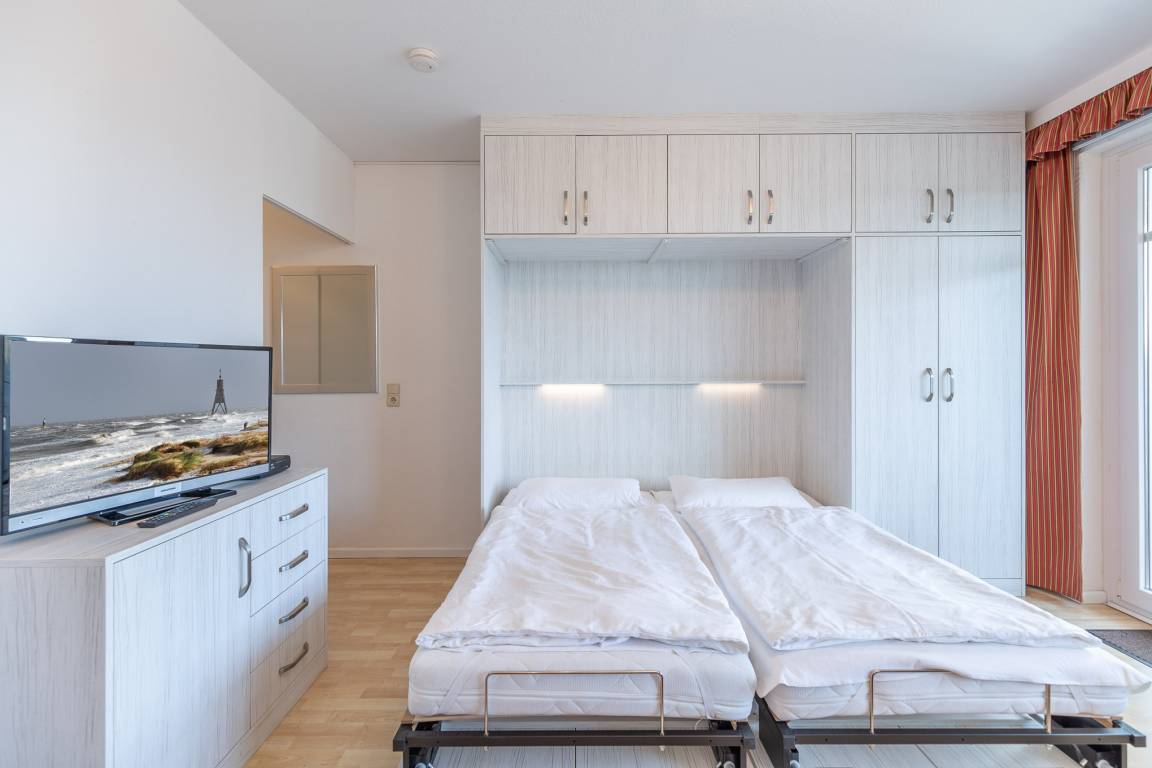 Gleich nach dem Aufwachen mal einen Blick auf die Nordsee werfen? Gern! Ferienwohnung Atlantic 309 bietet direkten Meerblick. Der kombinierte Wohn- und Schlafbereich ist mit einem Premium-Schrankbett (2x90x200) einer Tischlerei ausgestattet. Darüber hinaus ist die 32 m² Ferienwohnung mit einem Schlafsofa ausgestattet, sodass auch 3 Personen Ihren Wohlfühlurlaub in der Ferienwohnung verbringen können. Außenjalousien gewährleisten, dass Sie nicht von der Morgensonne geweckt werden.