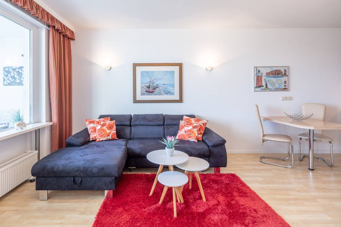 Ein Flachbildfernseher und kostenloses WLAN sorgen für beste Unterhaltung. An trüben Tagen bieten Schwimmbad und Sauna im Haus Atlantic ausreichend Abwechslung. Auf dem komfortablen Ecksofa oder auf dem verglasten Balkon können Sie den Abend ausklingen lassen und dabei den Schiffsverkehr beobachten. Die Küche ist mit einem 2-Zonen Cerankochfeld sowie einem Kühlschrank mit Gefrierfach ausgestattet. Ein modernes Bad mit Dusche und WC gehört zum Standard dieser Wohnung. Der Wohnung ist ein KFZ-Stellplatz fest zugeordnet.