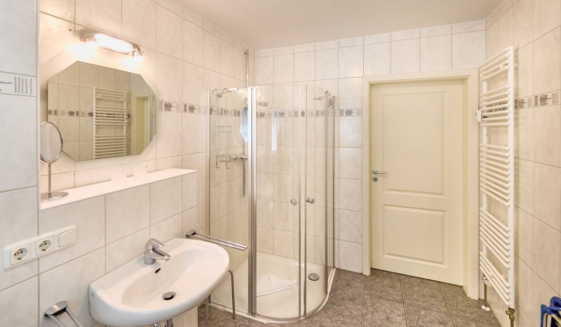Steinmarner Stadtvilla, FeWo 8, 3-Raum, EG links, 72m², bis zu 4 Personen, Wohlfühlen mit Terrasse und eigenem Garten. Die familiengerechte Ferienwohnung ist stilvoll eingerichtet und aufgeteilt mit einem Schlafzimmer mit Doppelbett, einem Kinderzimmer mit 2 Einzelbetten (auch für Erwachsene sehr gut geeignet), dem großzügigen Wohnbereich mit Esstisch und der abgetrennten Einbauküche, Dusche mit WC. Vom Wohnbereich geht es auf die große Terrasse mit Zugang zum Garten (mit Terrassenmöbeln). Die Wohnung bietet Ihnen einen neben dem W-Lan Netz einen Telefonanschluss ins deutsche Festnetz. Willkommen in der Stadtvilla Steinmarne.