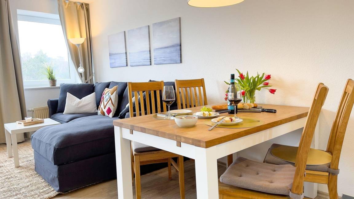 Die ideale Ferienwohnung für bis zu 4 Personen bietet modernen Komfort, seitlichen Seeblick und liegt nur 200 Meter vom Sahlenburger Sandstrand entfernt – perfekt für einen entspannten Nordseeurlaub.