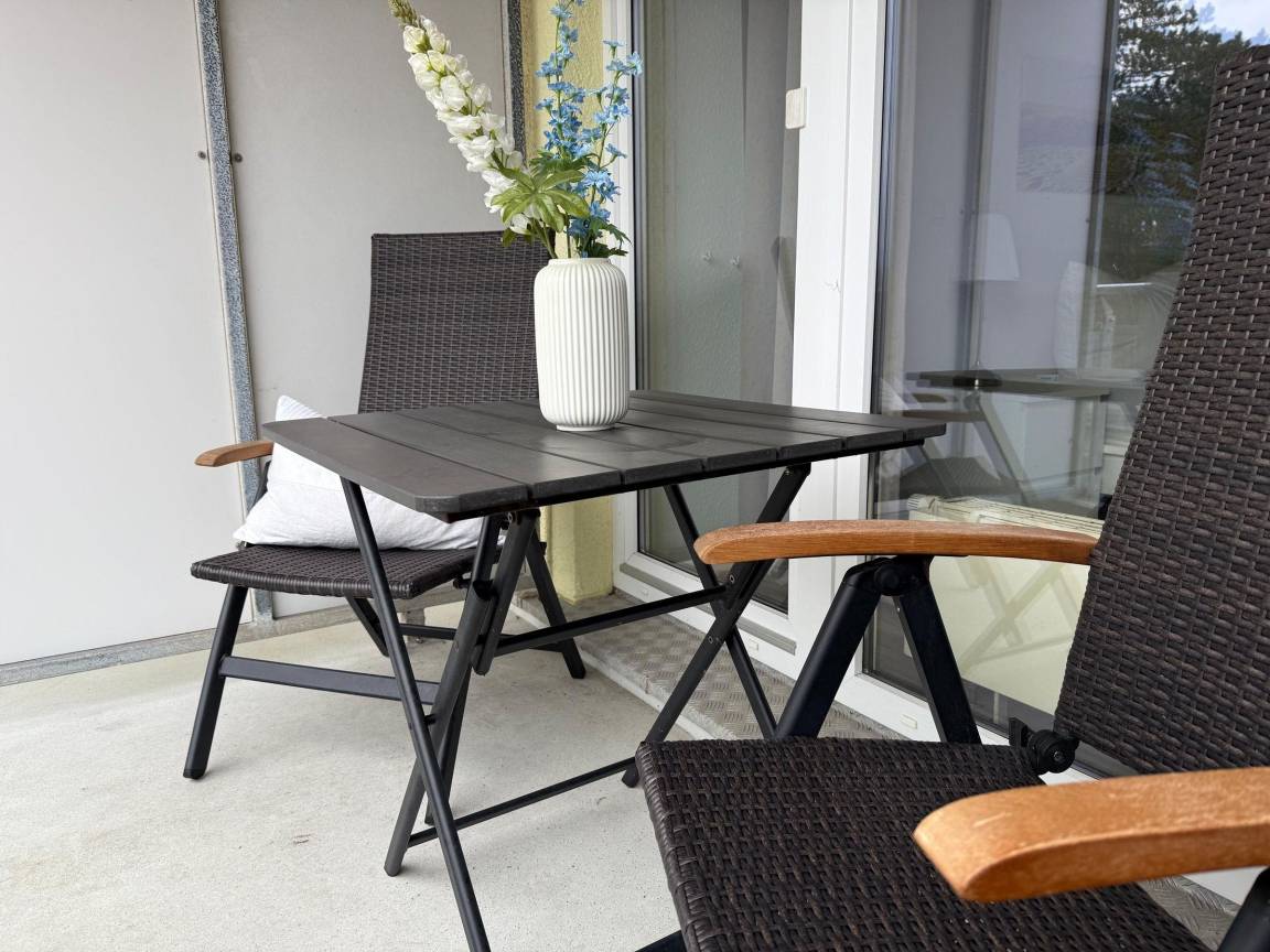 Die Ferienwohnung bietet eine moderne Ausstattung und eine ruhige Atmosphäre. Die großzügigen Räume sind hell und freundlich gestaltet, während der Balkon ideale Entspannung mit Blick auf die umliegende Natur verspricht. Ein idealer Rückzugsort für Erholungssuchende, der zudem eine zentrale Lage für zahlreiche Freizeitaktivitäten und Sehenswürdigkeiten bietet.