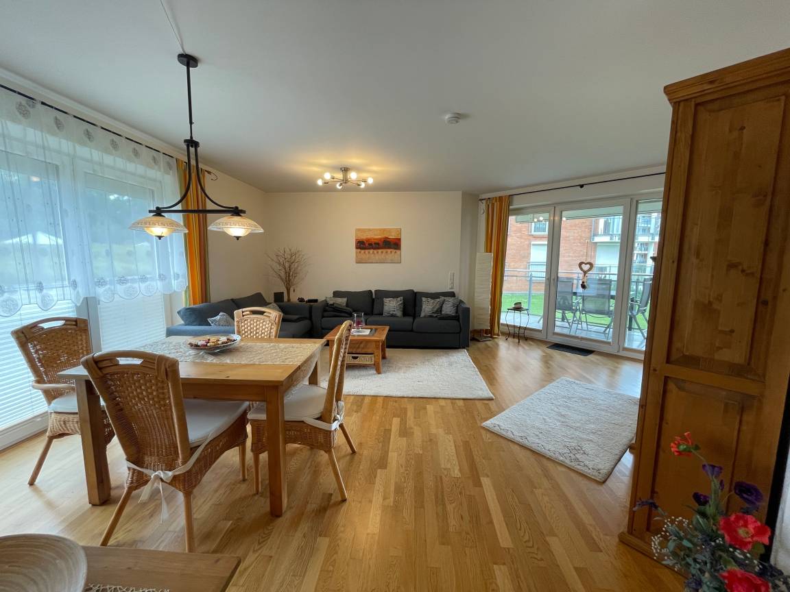 Diese hochwertige Ferienwohnung im Erdgeschoss bietet auf rund 90 m² großzügigen Raum für bis zu 6 Personen.