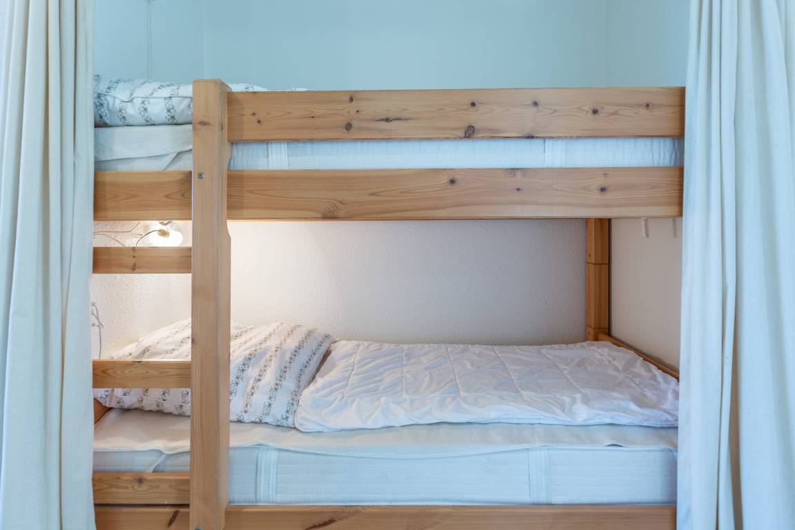 Für die Nacht stehen zwei Einzelschrankbetten (90x200) im Wohn- und Schlafbereich sowie ein Etagenbett (90x200) im abgetrennten Flur zur Verfügung. Dadurch gibt es separate Schlafmöglichkeiten, die sich ideal für Getrenntschlafende und für Familien mit Kind eignen. Das Badezimmer ist mit Dusche, WC und einem Fenster zum Belüften ausgestattet. Auf dem möblierten Balkon können Sie den Blick über den Hafen und den Schifffahrtsweg schweifen lassen und die vorbeifahrenden Schiffe beobachten. Ein Highlight zu jeder Tageszeit. Ein Außenstellplatz direkt am Haus sorgt dafür, dass Ihr Fahrzeug sicher und bequem untergebracht ist.