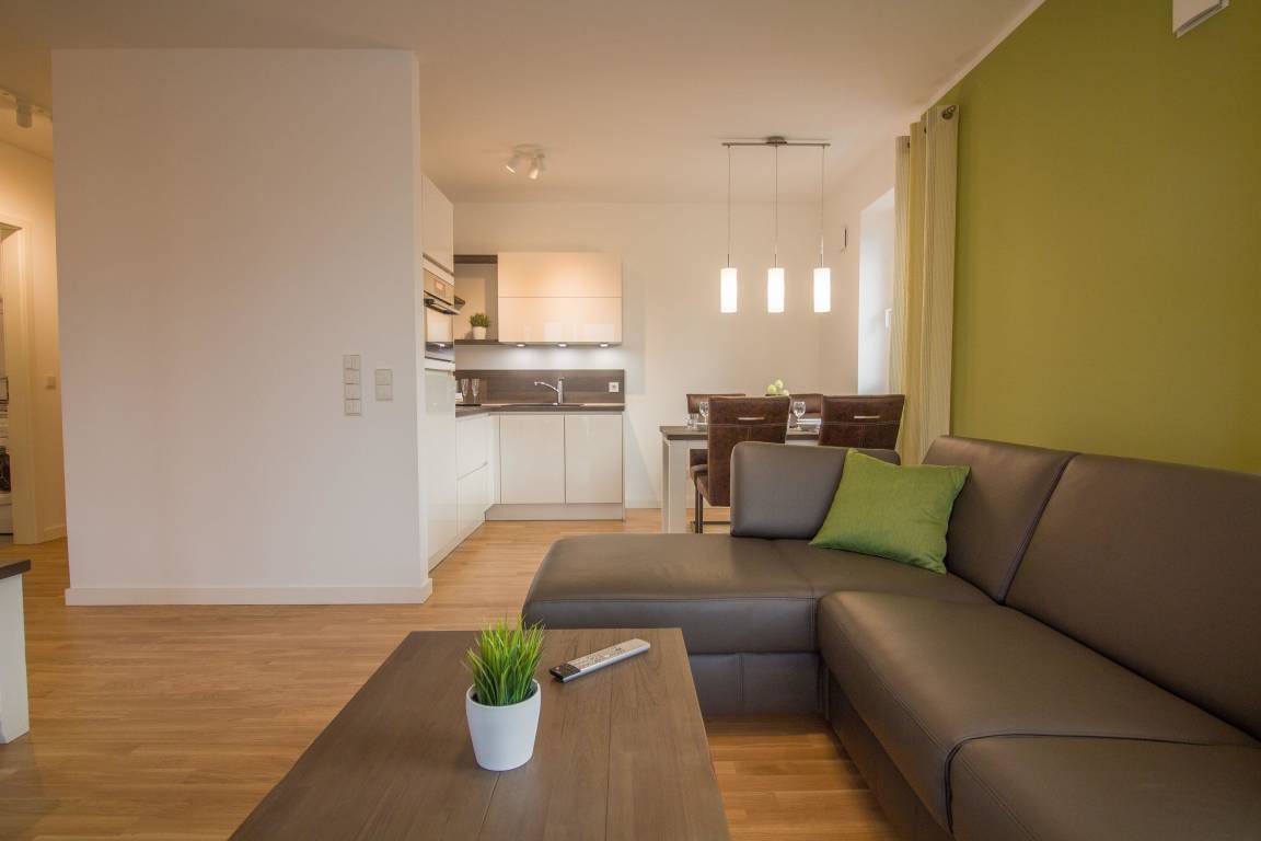 Neubauwohnung an der City-Marina für 4 Personen auf ca. 69 qm, tolle 3-Zimmer Luxus Ferienwohnung in der 1. Etage mit Lift, Fußbodenheizung und Lüftungsanlage, elektrisch verstellbare Boxspringbetten im Schlafzimmer I und hohes Einzelbett im Schlafzimmer II, 140cm breites hochwertiges Schlafsofa im Wohnbereich, voll ausgestattete Küche mit Mikrowelle + Spülmaschine.