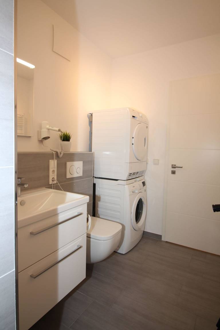 Reservierter Stellplatz im Carport, Fahrradkeller und ein eigener abschließbarer Kellerraum mit Steckdose für E-Bikes, Alle Fenster haben ein eklektisch betriebene Rollo, eigener DSL50 LAN und WLAN Anschluss, Smart TV 2x40" und 1x55" internetfähig und LAN angeschlossen, HiFi-Anlage mit Bluetooth, verglaste Loggia und Balkon, bodentiefe Dusche mit Thermostat und Handbrause, Balkon und Hartholz-Belag, Allergiker-geeignete Bodenbeläge und Betten.
