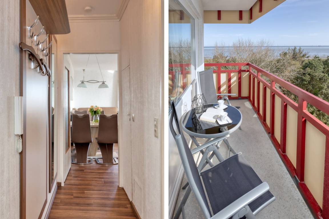 Das Appartement 88 ist ein 2-Raum-Appartement im 7. Obergeschoss für bis zu 4 Personen mit 39 qm. Der möblierte Ostbalkon mit Meerblick bietet morgens Sonne und nachmittags Schatten.