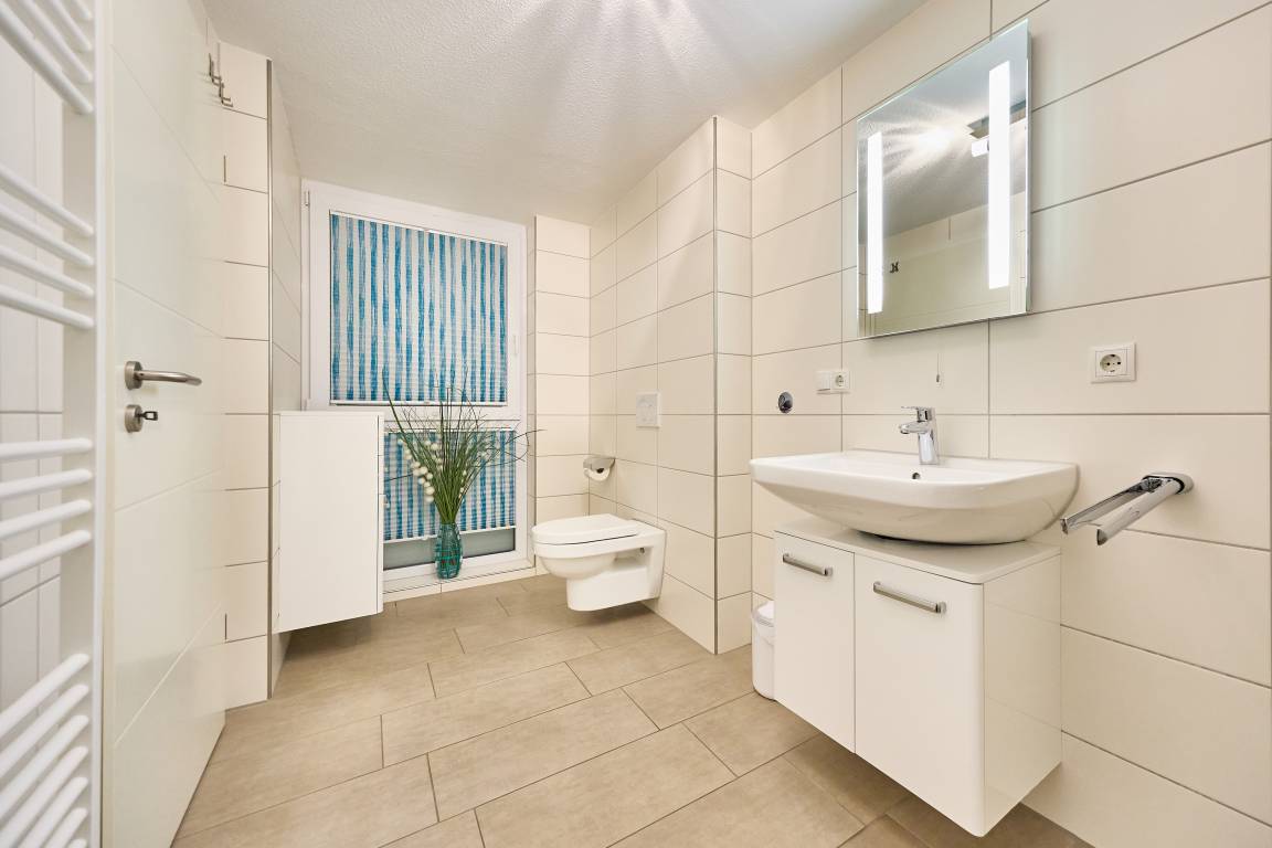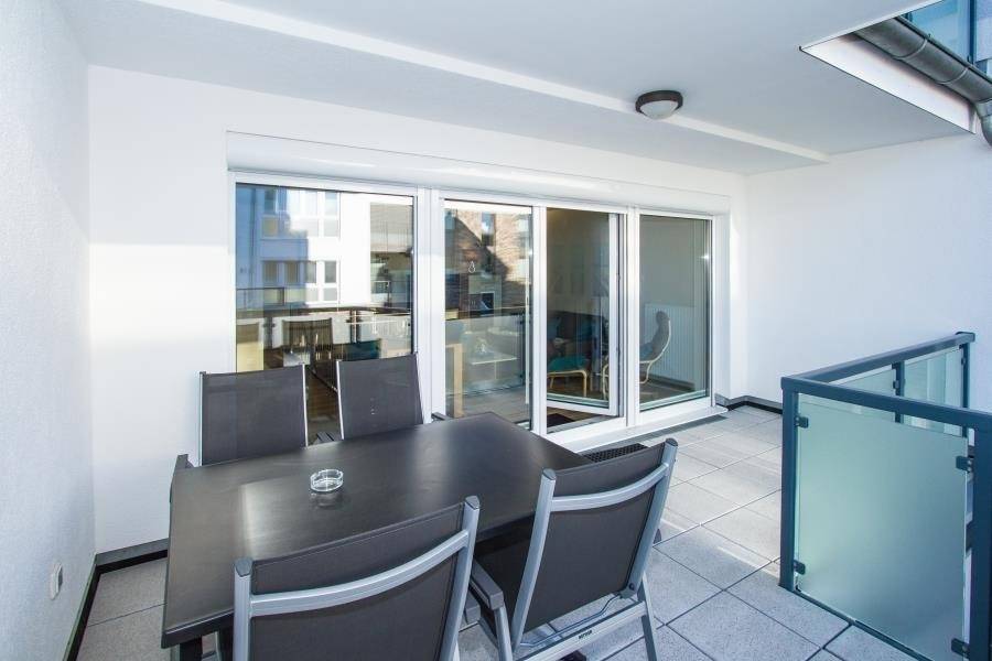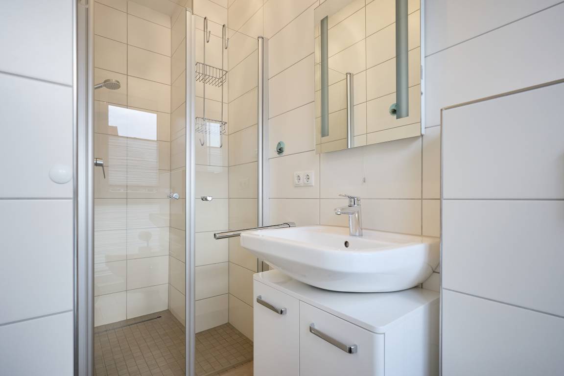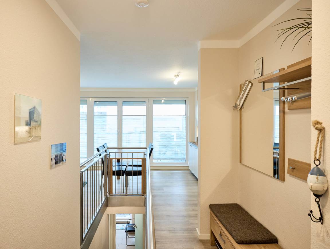 Es erwartet Sie hier eine geräumige und hochwertig ausgestattete Ferienwohnung über 2 Etagen für bis zu 4 Personen. Im 1. OG der Wohnung schlägt das Herz. Ein gemütlicher und zugleich moderner Wohn- und Essbereich erwartet Sie hier. Das Wohnzimmer besteht aus einer gemütlichen Couch, hier lässt es sich gut relaxen. Ein großer Balkon lädt zum morgendlichen Frühstücken oder abendlichen Entspannen ein. Auch befindet sich hier ein Doppelschlafzimmer mit einen begehbaren Duschbad mit WC. Vom Schlafzimmer haben Sie noch einen kleinen Balkon Richtung Süden. Vom Wohn- und Essbereich gelangen Sie ins Erdgeschoss der Wohnung. Hier befindet sich ein weiteres geräumiges Schlafzimmer mit Zugang zu einer großen und geschützten Terrasse, mit Zugang in das helle und großzügige Duschbad mit WC. Als besonderes Ausstattungsmerkmal befindet sich abgetrennt vom Schlafbereich noch ein Waschraum mit Waschmaschine und Trockner und Einbauschränken. Von hier aus haben Sie direkten Zugang zur eigenen Fahrradgarage in der Sie auch Koffer, Kinderwagen, Fahrradanhänger u.ä. abstellen können. In dieser befindet sich auch ein Stromanschluss für Ihre E-Bikes. Kommen Sie also von der Radtour in Ihr Urlaubsquartier und gehen direkt durch die Fahrradgarage (lässt sich mit Fernbedienung öffnen) in Ihre Wohnung. Toll. Ein PKW-Stellplatz befindet sich vor der Garage, wo Sie z.B. mitgebrachte Fahrräder sicher abstellen können, auf einer gekennzeichneten Fläche. Alle Räume haben Fenster und sind mit Außenrolläden versehen.