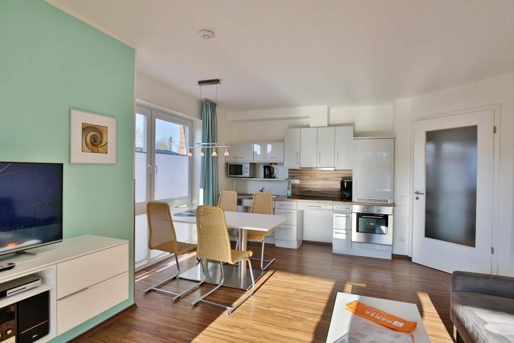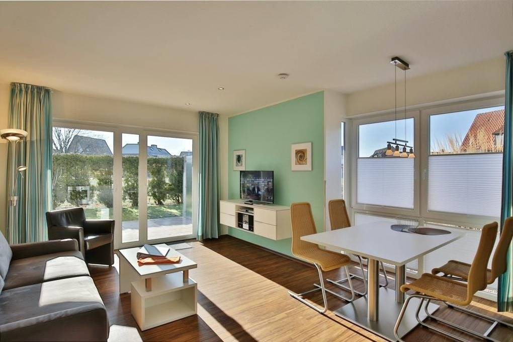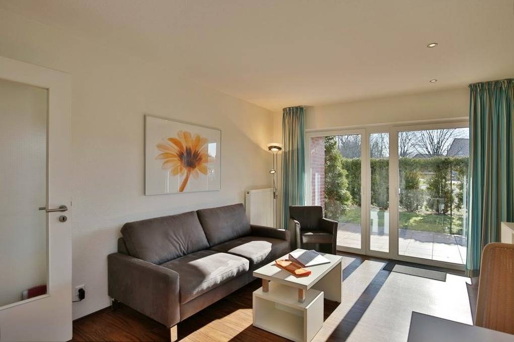 Sehr geschmackvolle und vollständig ausgestattete, barrierefreie Wohnung über 48m², parterre mit Terrasse (süd) mit Balkonmöbeln und Sonnenschirm (saisonabhängig), 1 Schlafzimmer mit zwei Einzelbetten(elektrisch verstellbar), SAT-TV, DVD, Stereo, kostenloses W-LAN Internet, Wohnzimmer mit kompletter Küchenzeile (unterfahrbar) mit Geschirrspüler, Mikrowelle, Backofen, Gefrierfach, Du/Wc mit ebenerdiger Dusche, Rollladen, reservierter Pkw-Stellplatz vor dem Haus, Nichtraucher, keine Haustiere gestattet.