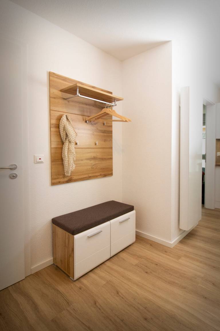 Der geräumige Eingangsbereich ist mit einer Garderobe mit Schuhschrank, Schmutzfangmatten und einem zusätzlichen Schrank inkl. Staubsauger, Besen und Co. ausgestattet. Hier finden Sie auch eine Auswahl an Gesellschaftsspielen.