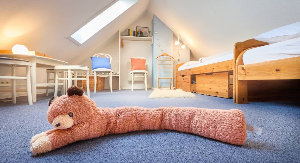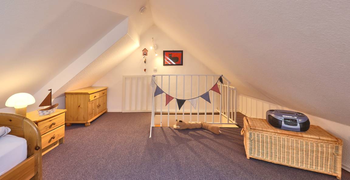 In diesem gemütlichen und schön gelegenen 2-Raum Ferienquartier, inkl. einer tollen Aufteilung für 4 Personen erwarten Sie helle Räume und eine gute Ausstattung. Die Ferienwohnung ist im 2.OG mit Fliesen ausgestattet und im DG, dem Kinderzimmer mit Teppich. Der Wohn- und Essbereich und Schlafbereich ist sehr gut aufgeteilt mit einem großzügigen Küchen- und Essbereich. Der Wohnbereich (mit TV, Radio-CD-USB- Player) ist gemütlich und lässt Sie von dem angrenzendem Süd-West Balkon bis in die Duhner Heide sehen. Der Schlafbereich ist abgetrennt hinter einem Vorhang, so das Sie am Tage nichts wegräumen brauchen. Im ausgebauten DG befindet sich ein Kinderzimmer mit 2 Einzelbetten, sowie ein Radio mit Cassetten und CD- Player. Das Duschbad mit WC hat ein Fenster. Im Haus befindet sich noch eine gemeinschaftlich genutzte, gebührenpflichtige Sauna mit Ruheraum und Kaminzimmer. Auch haben Sie seitlich einen Zugang zum Garten des Hauses.