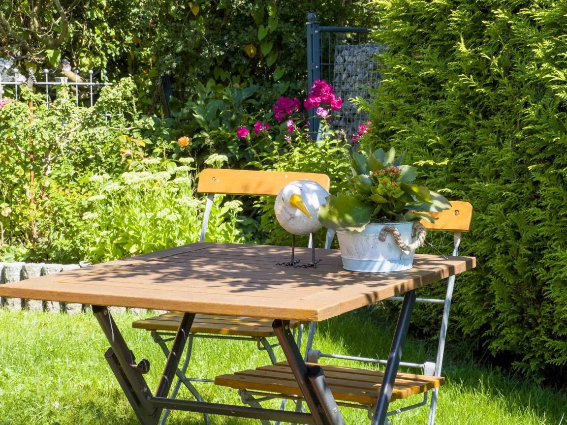 Der Außenbereich der eleganten Ferienwohnung Ankerplatz Duhnen bietet eine ideale Umgebung für Erholung und Entspannung. Nur 50 Meter trennen die Gäste von einem traumhaften Strand, während die Liegewiese mit Sonnenliegen zum Sonnenbaden einlädt. Vom privaten Balkon aus genießen Besucher den atemberaubenden Blick auf das Meer. Die großzügige, ruhige Gartenanlage steht gemeinschaftlich zur Verfügung und bietet einen perfekten Rückzugsort in der Natur. Neben der Liegewiese können Gäste auch die Gartenmöbel nutzen, um im Freien zu verweilen. Für aktive Stunden stehen ein Fitnessbereich sowie eine Sauna zur Verfügung. Die Lage in der ersten Reihe am Strand macht das Apartment zu einem idealen Urlaubsziel für diejenigen, die die maritim-frische Luft und die Schönheit der Küstenlandschaft erleben möchten. Ein privater Parkplatz sowie eine Ladesäule für Elektroautos runden das Angebot ab.