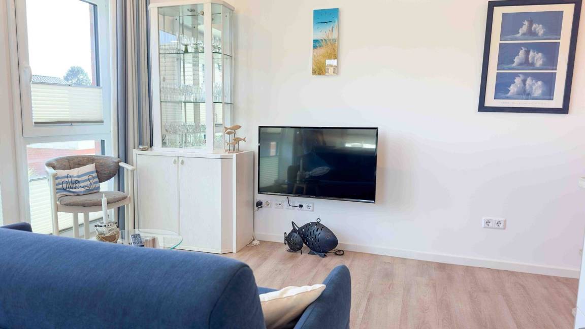 Das elegante Apartment Ankerplatz Duhnen bietet auf 51 m² eine moderne und geschmackvolle Ausstattung. Das lichtdurchflutete Wohnzimmer ist offen zur voll ausgestatteten Küche gestaltet, die alle nötigen Geräte wie Induktionsherd, Backofen und Spülmaschine enthält. Ein gemütlicher Esstisch lädt zu gemeinsamen Mahlzeiten ein. Im Schlafzimmer erwartet die Gäste ein komfortables Doppelbett sowie allergikergeeignete Möbel. Das Badezimmer überzeugt mit einer bodengleichen Dusche und ist mit einer Waschmaschine ausgestattet. WLAN und zwei Kabel-TVs sorgen für Unterhaltung. Zur gemeinschaftlichen Nutzung stehen eine Sauna und ein Fitnessraum im Haus zur Verfügung. Die kinder- und rollstuhlfreundliche Ausstattung, inklusive einer breiten Eingangstür und eines Fahrstuhls, bietet zusätzlichen Komfort. Ein Privatparkplatz sowie eine Wallbox für Elektroautos runden das Angebot ab. Die Nähe zum Strand und Einkaufsmöglichkeiten macht das Apartment ideal für einen erholsamen Urlaub.