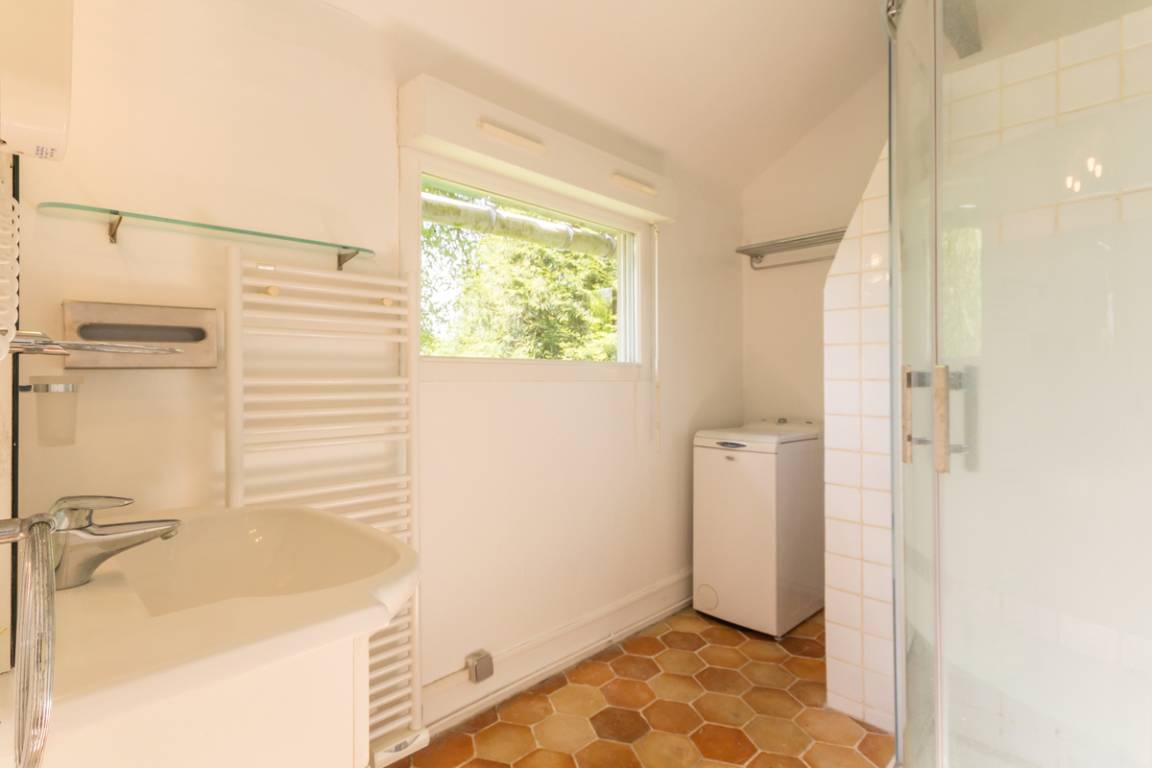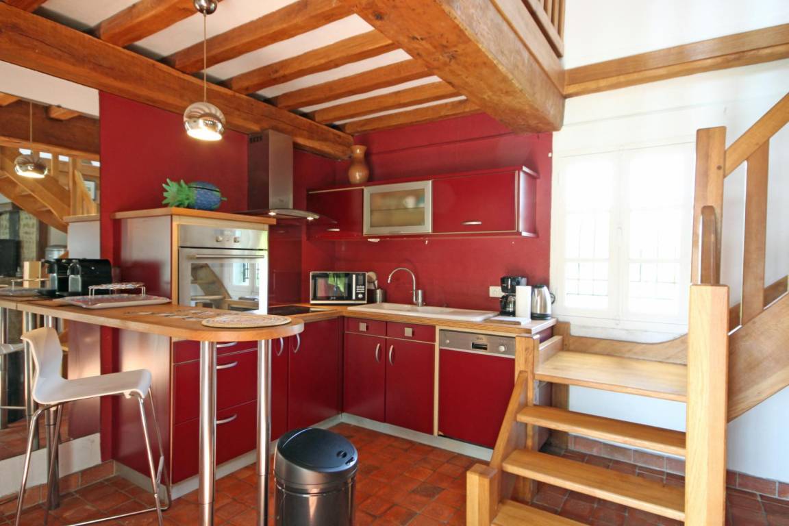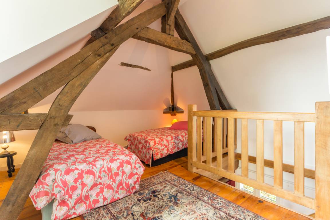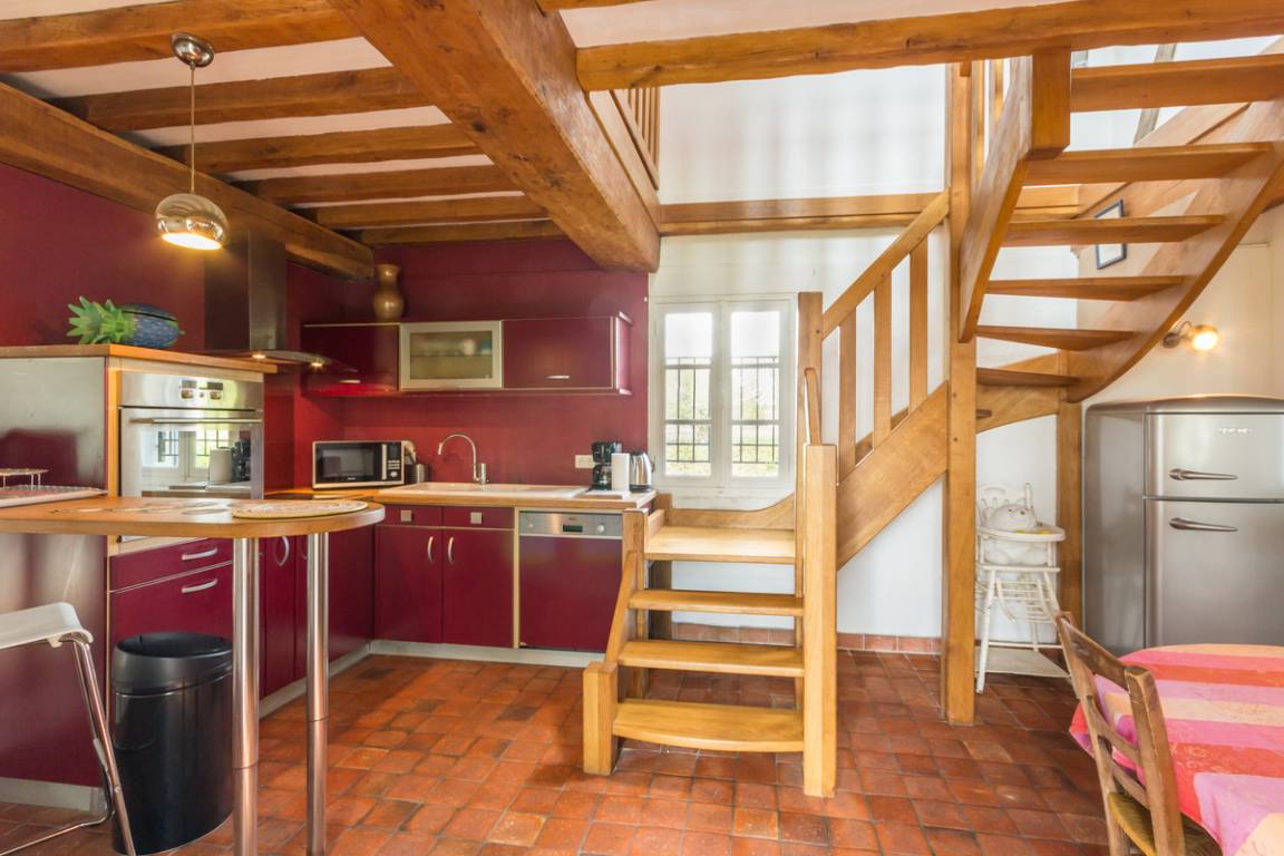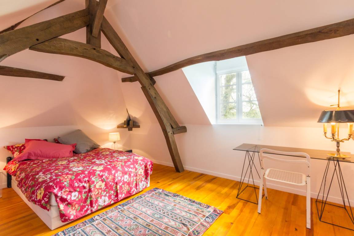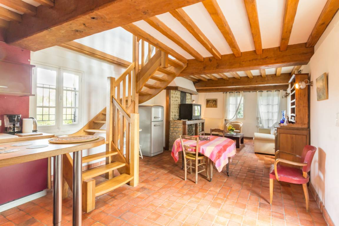 „Magnifique endroit, gîte très agréable avec une verrière fantastique donnant sur le jardin et les chevaux. Un bémol, cependant... l'éloignement de la toilette et salle de bain par rapport à la chambre qui oblige à passer par la mezannine (et sans doute réveiller les enfants ou amis qui y dorment), descendre au rez de chaussée, traverser la cuisine et la verrière avant d'arriver à la salle de bain et la toilette... Ennuyeux pour ceux qui se lèvent souvent la nuit...Mais à part ça, tout était parfait (sauf la météo...)“