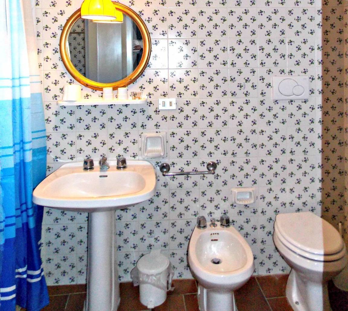 Badezimmer 1: Waschbecken, WC, Bidet, Dusche.