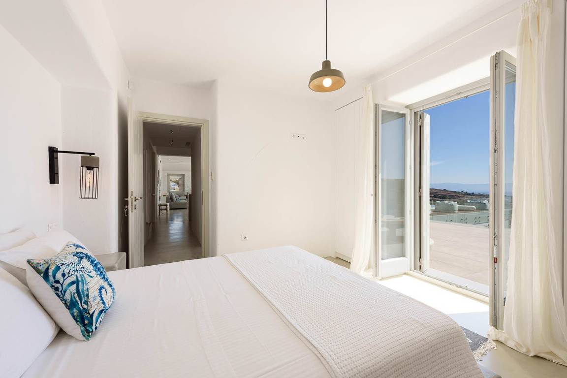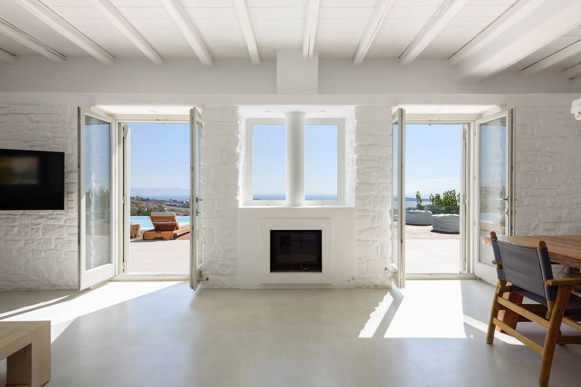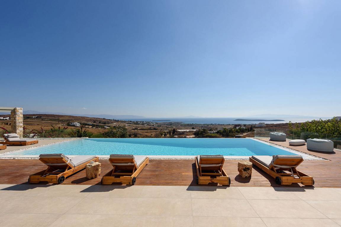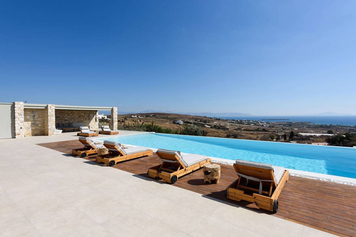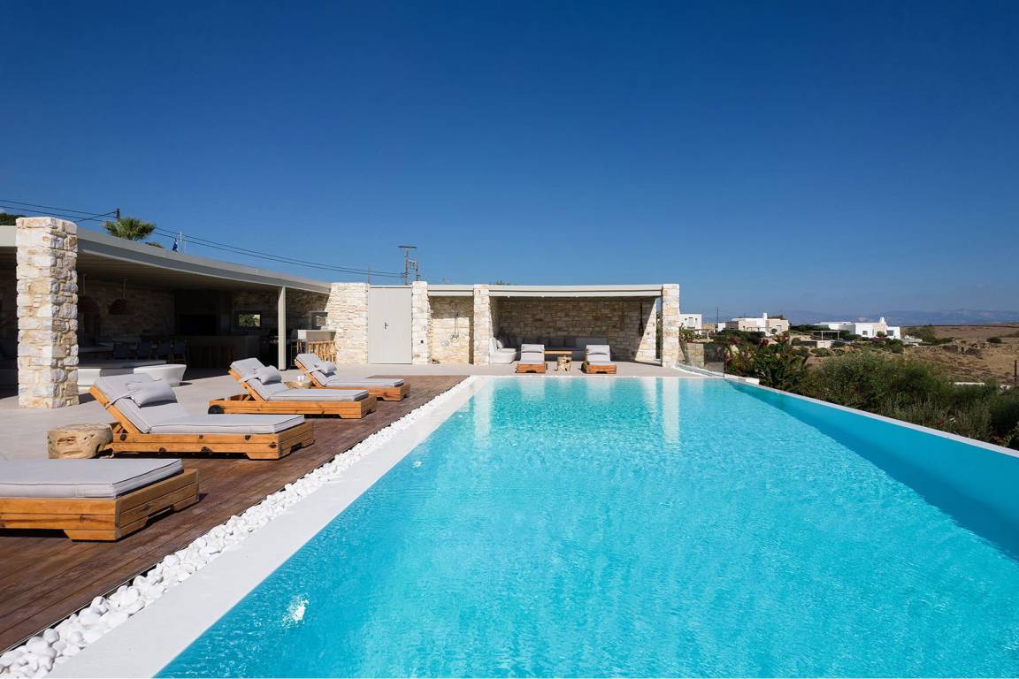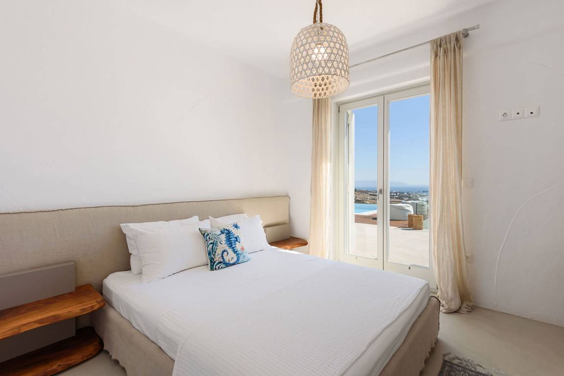 Die Villa liegt in Paros in unmittelbarer Nähe zum Golden Beach. Das Anwesen bietet Meerblick von innen.