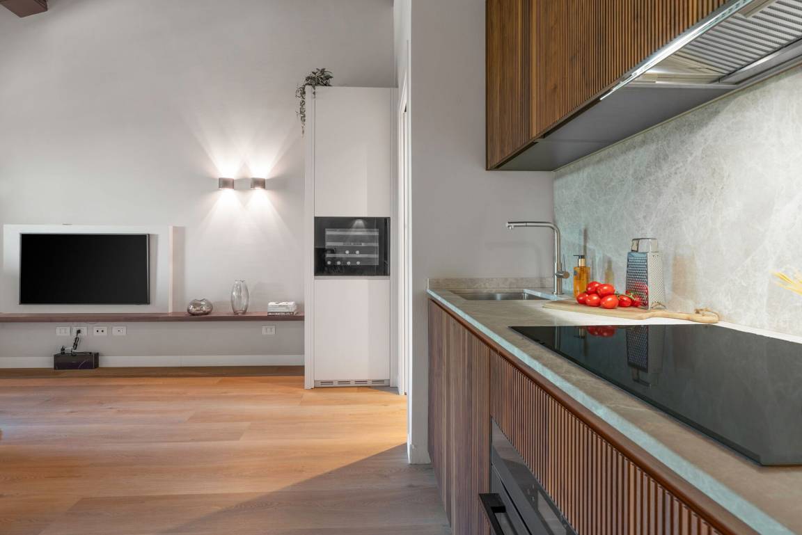 Wohnküche: gut ausgestattete Küche, Esstisch, Spülmaschine, Kühlschrank, Tiefkühler, Ofen, Bügeleisen, Italienische Kaffeemaschine, Sofa (Personen: 2), WiFi Internet, Klimaanlage, Fliegengitter, Ausgang auf den Balkon.