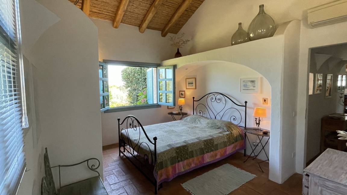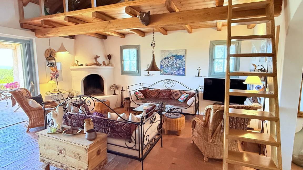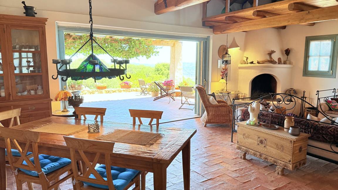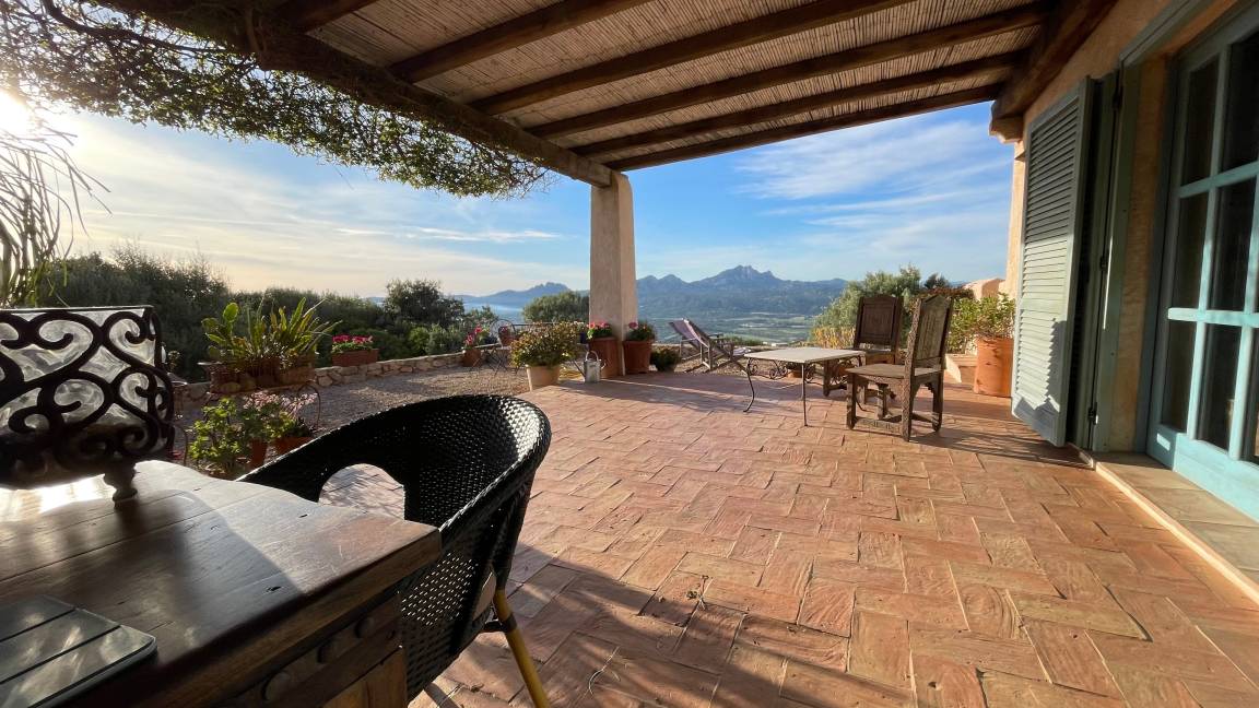 Villa Stazzu La Sarra | Cannigione (Arzachena) | für 6 Gäste, 3 Schlafzimmer + 3 Bäder. 5 Min. Fahrt zum Strand. Außergewöhnliches Sardisches Landhaus (Stazzu), 180m², mit Appartement Gartenetage, Panorama Pool, Meerblick und spektakulärem rundum Fernblick. 15 km von Porto Cervo, Costa Smeralda.