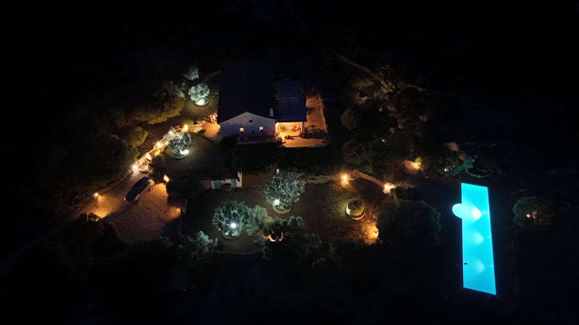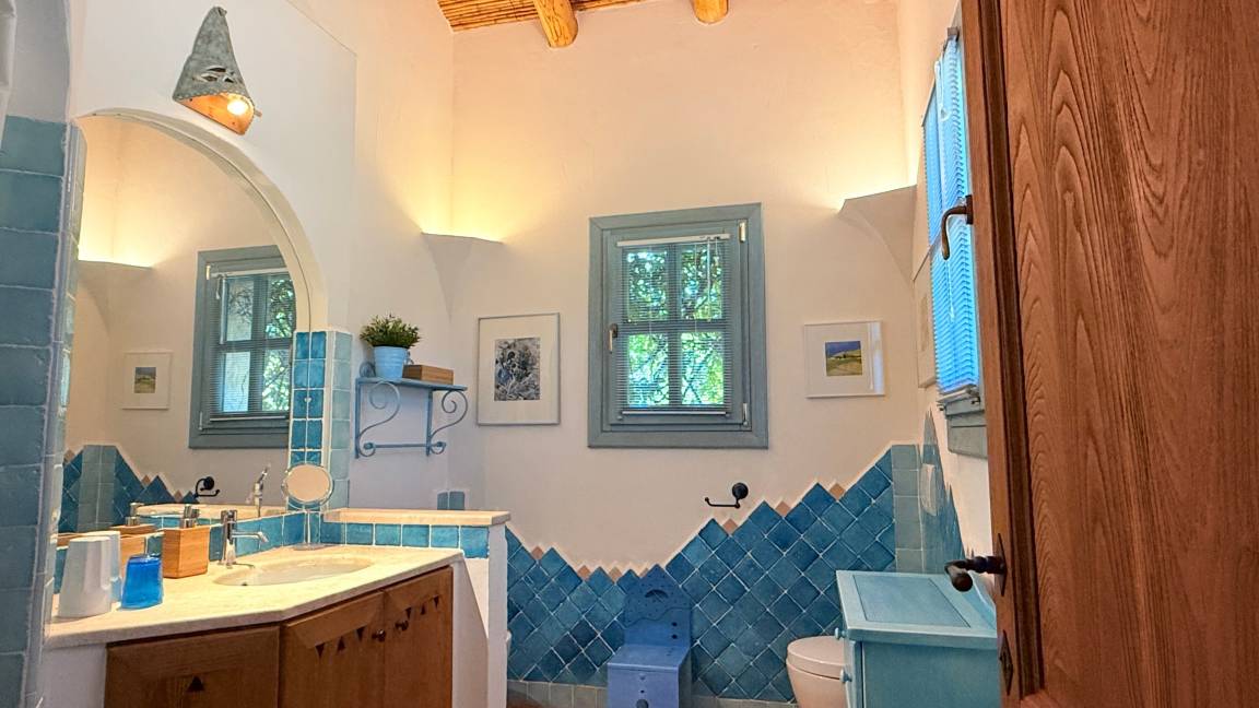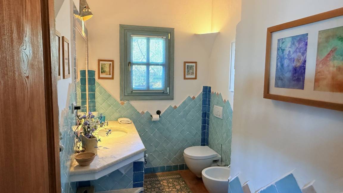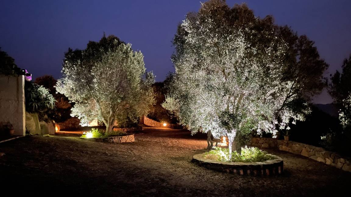 Von der Landstraße zwischen Cannigione und Arzachena zweigt ein etwa 2 km langer Privatweg, gesäumt von alten Korkeichen, Wacholder- und Macchia-Gewächsen ab, der zu unserem Haus führt. Das Haus ist nach ökologischen Gesichtspunkten erbaut und liegt auf einem Hügel in einer weitläufigen, teilweise felsigen Landschaft mit der typisch sardischen Vegetation.