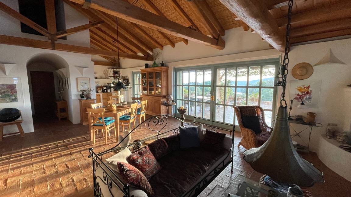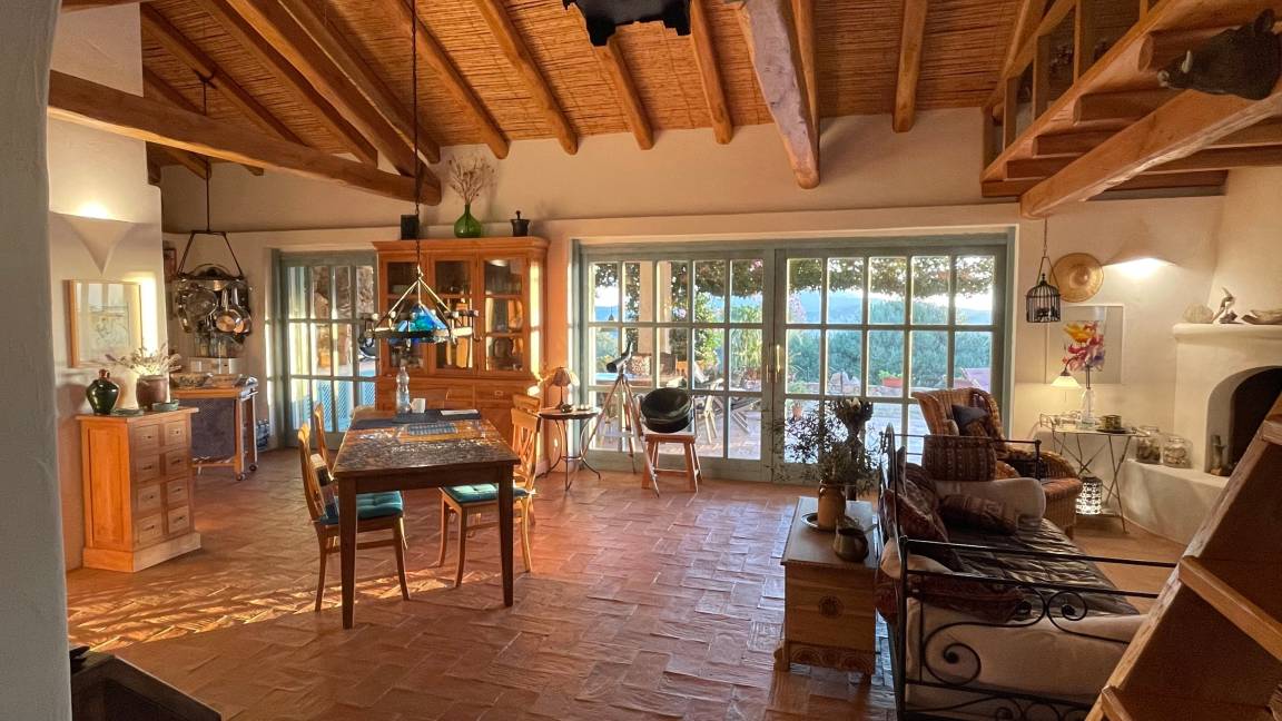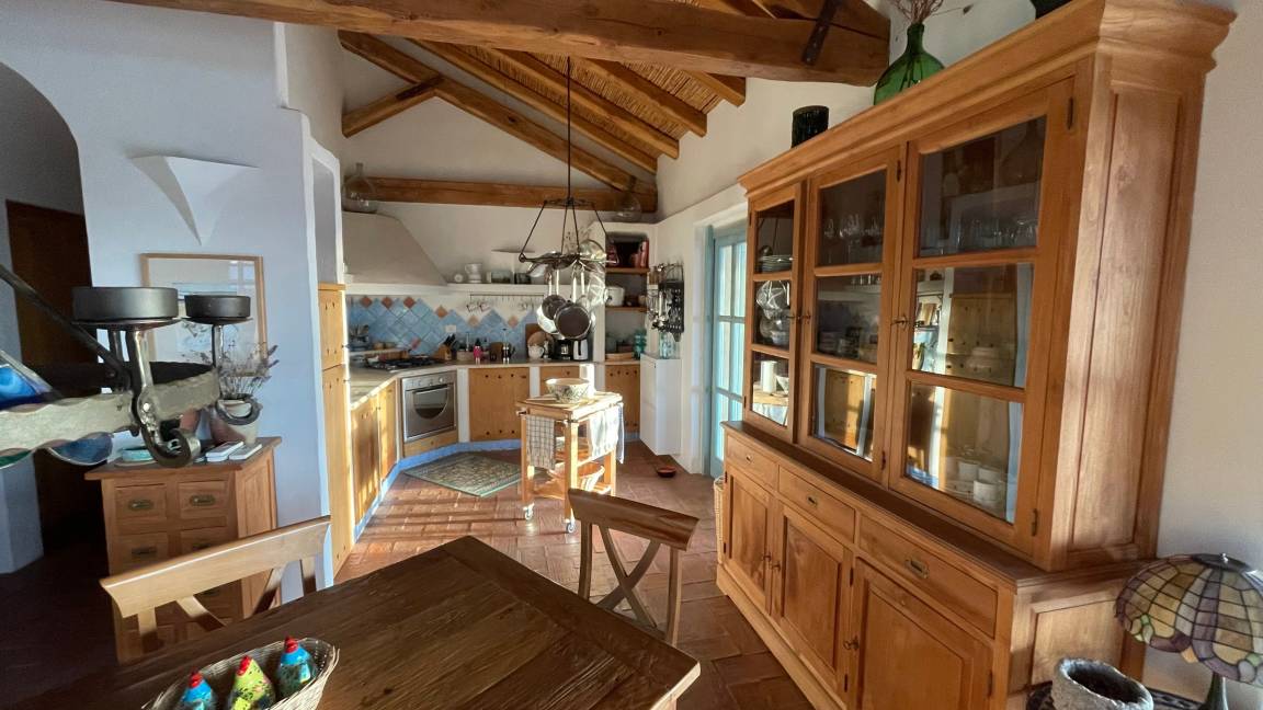 Auf der großen Terrasse, die zur Hälfte überdacht ist, befindet sich eine mit Granitsteinen gemauerte, Außenküche mit E-Grill, sowie einem zusätzlichen Esstisch für Ihre Grillabende. Von hier aus gelangt man zu einem kleinen Solarium mit atemberaubendem Ausblick. Übrigens, alle Räume im Haus sind klimatisiert (Nutzung optional).