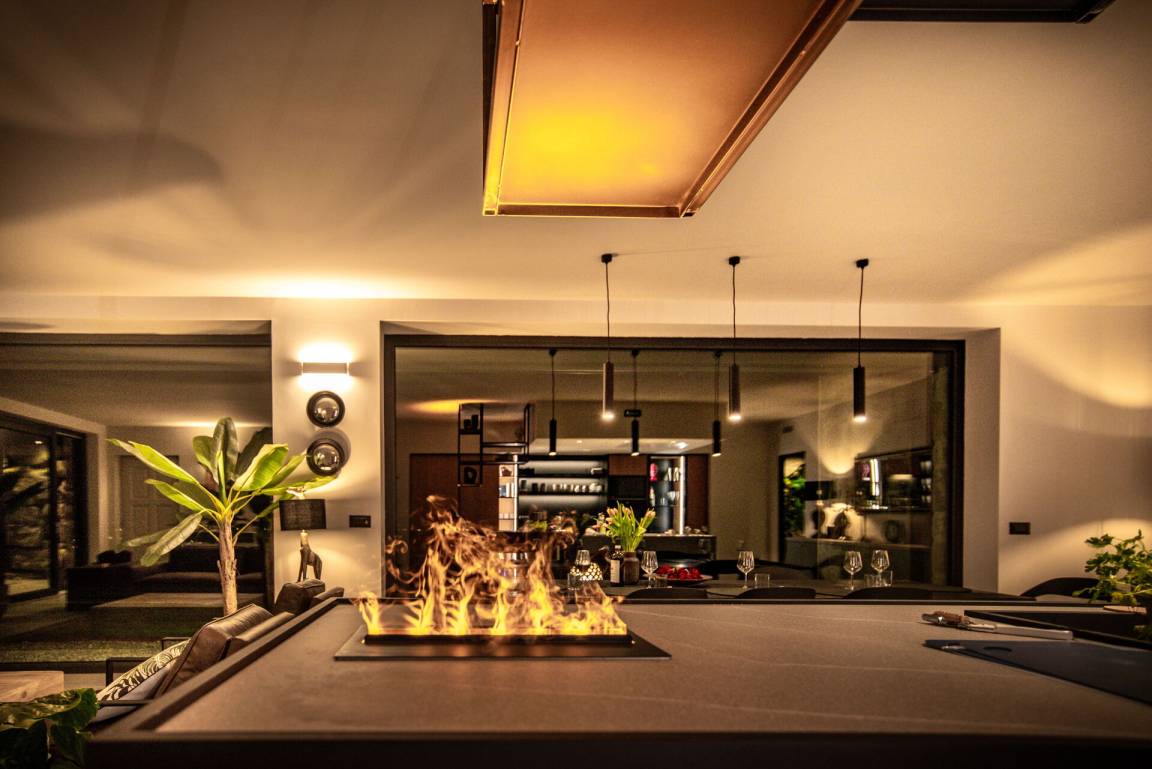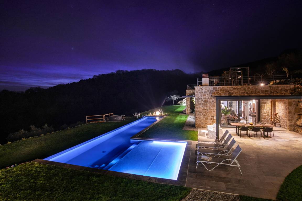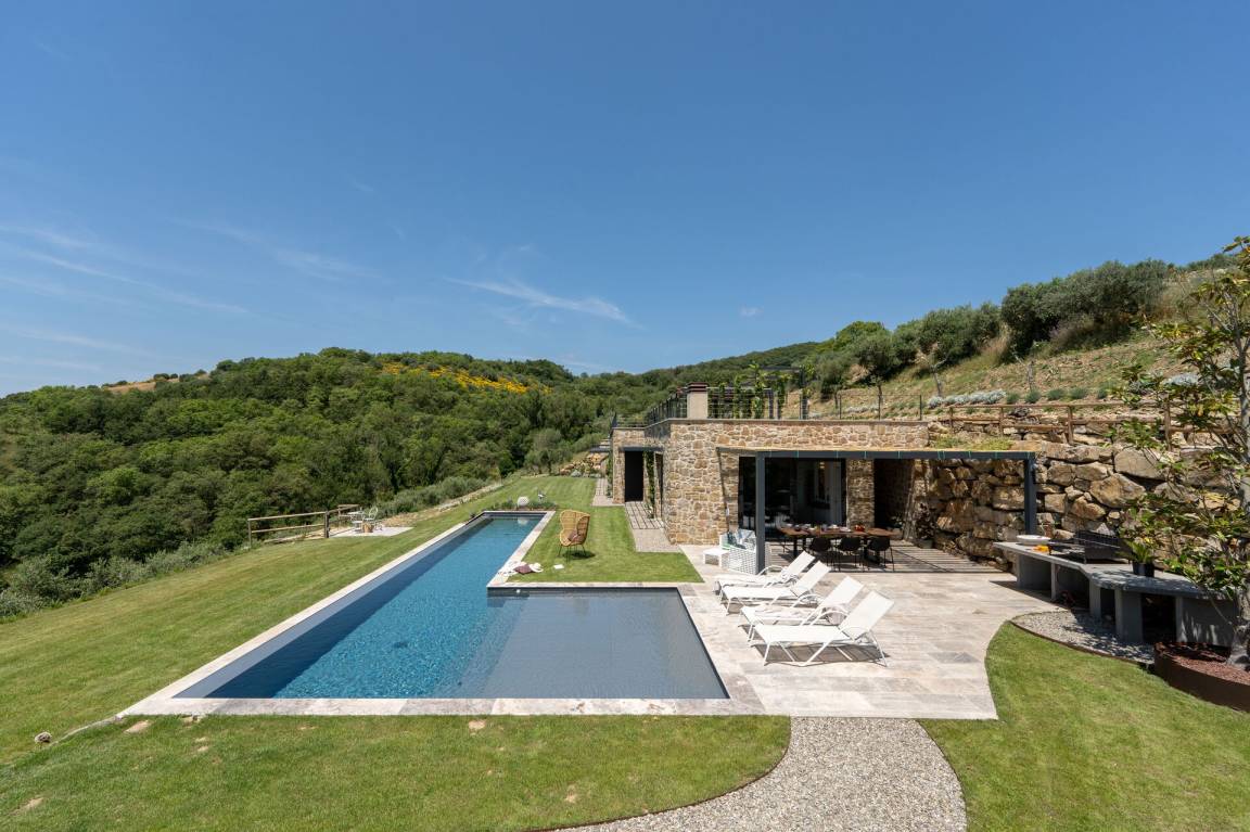Garten: Schwimmbad (privat, Breite: 16.5m, Länge: 2.7m, Tiefe: 1.5m, Außen, beheizt), Dusche, WiFi Internet, Grill, Außenbereich für das Essen im Freien, Esstisch (Personen: 10), Gartenmöbel, Sonnenliege, umzäuntes Grundstück.