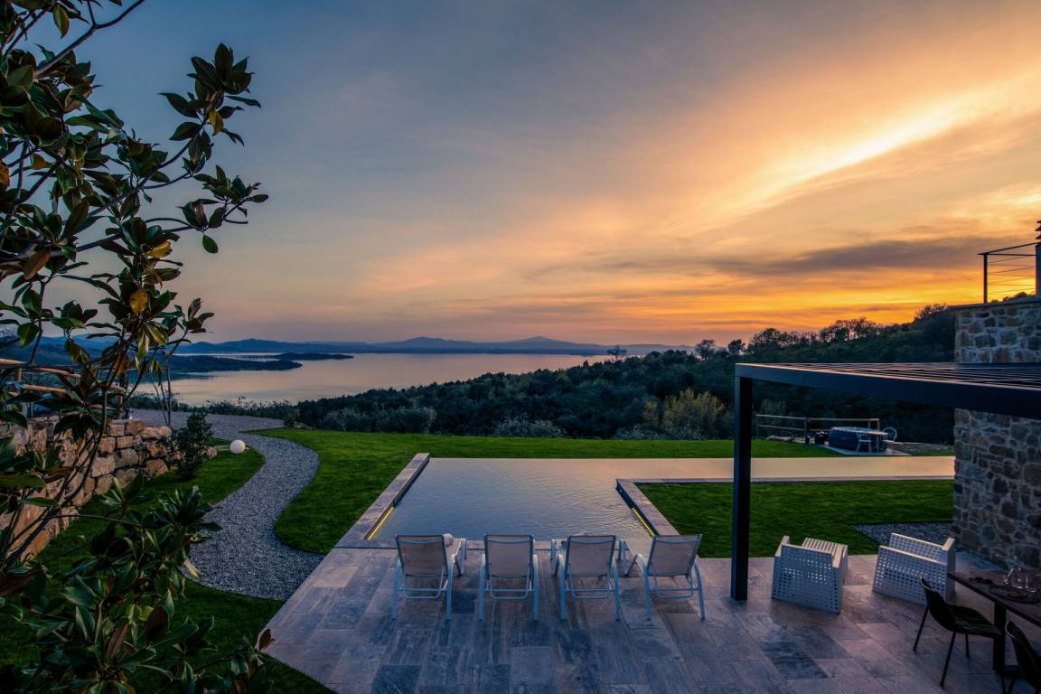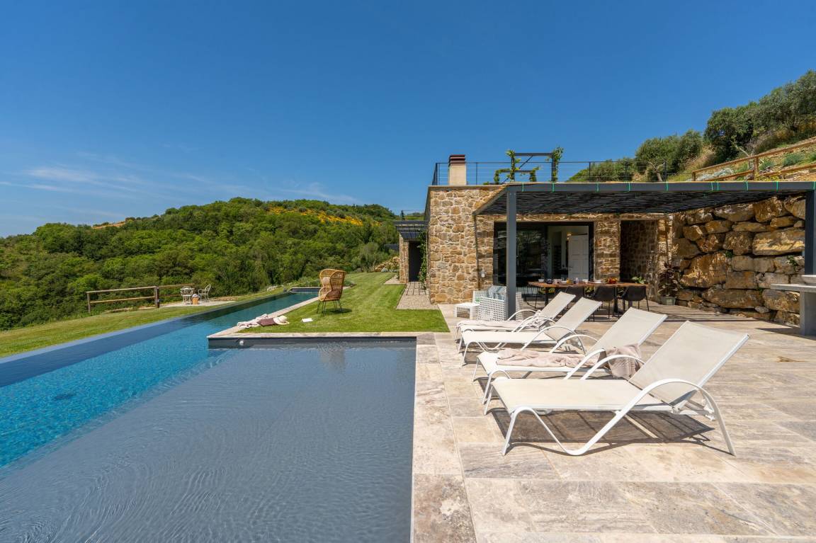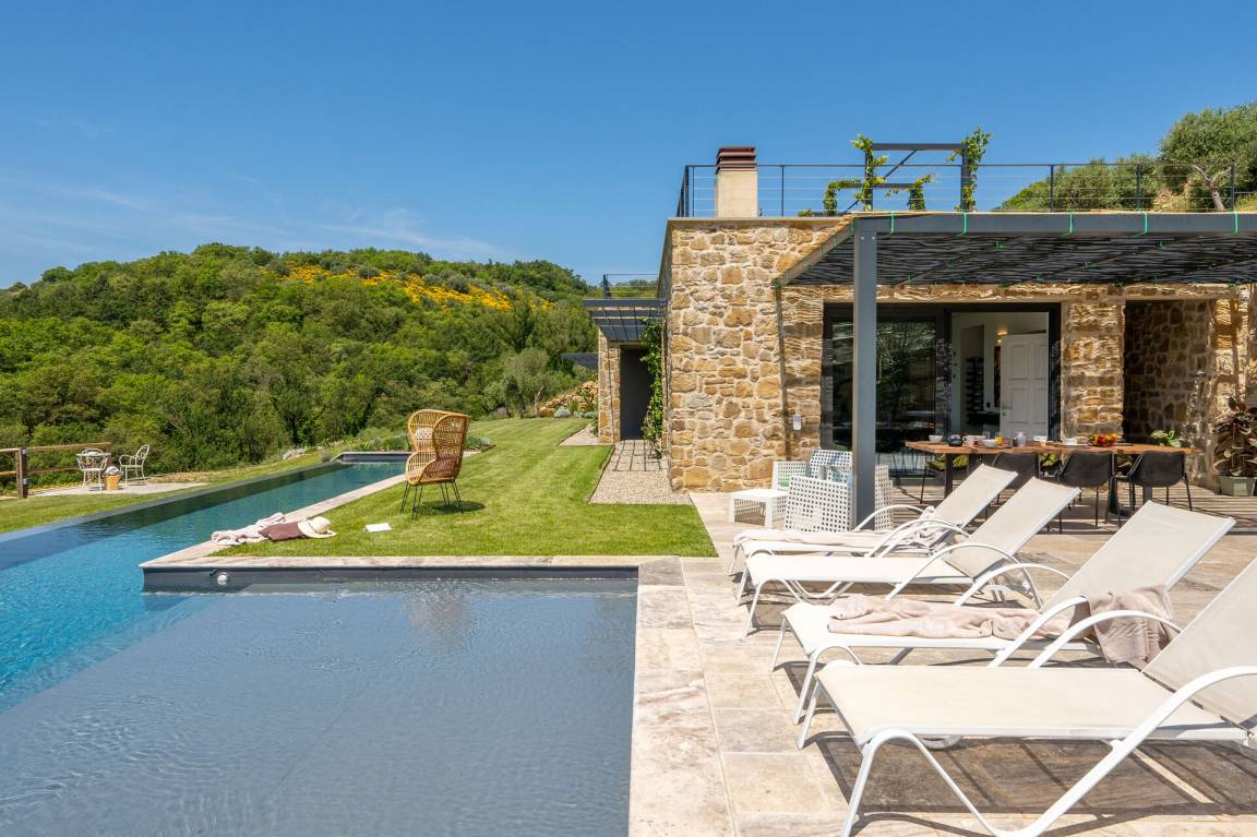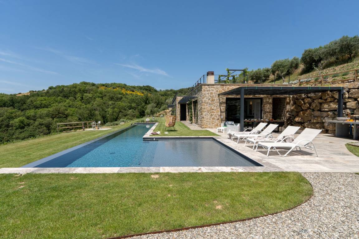 Garten: Schwimmbad (privat, Breite: 16.5m, Länge: 2.7m, Tiefe: 1.5m, Außen, beheizt), Dusche, WiFi Internet, Grill, Außenbereich für das Essen im Freien, Esstisch (Personen: 10), Gartenmöbel, Sonnenliege, umzäuntes Grundstück.