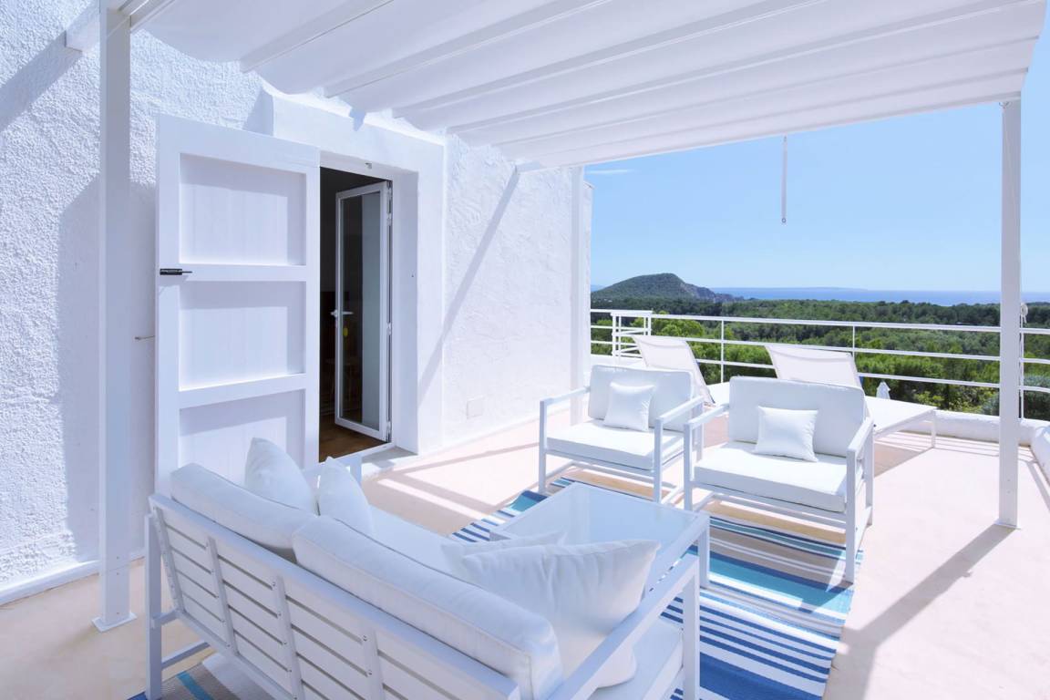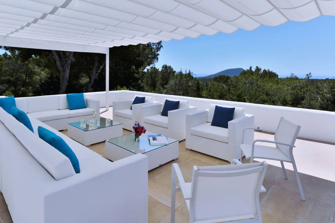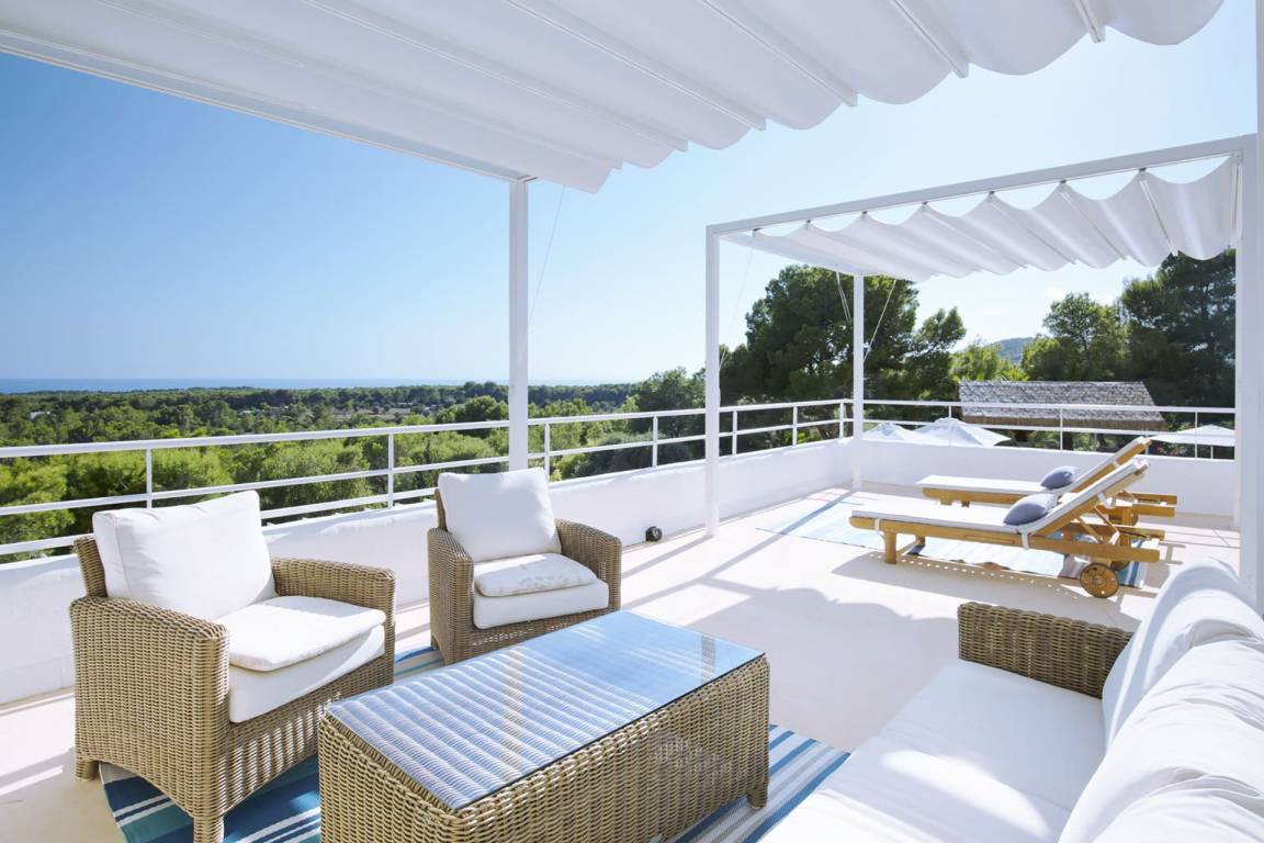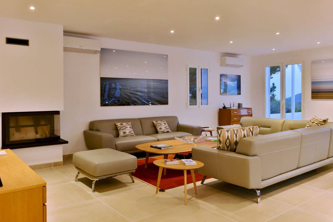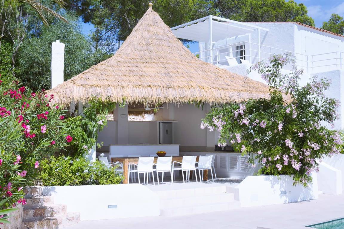 Die Villa umfasst insgesamt mehrere Geschosse, bietet Platz für bis zu 16 Gäste und verfügt über 8 Schlafzimmer und 9 Bäder. Die Schlafzimmer sind mit verschiedenen Bettkonfigurationen ausgestattet, darunter Doppelbetten und Einzelbettanordnungen. Die Bäder sind über die gesamte Immobilie verteilt und ermöglichen bequemen Zugang von allen Schlafbereichen. Die Wohnräume sind großzügig gestaltet und gehen fließend ineinander über. Von der Immobilie sind Meerblicke sichtbar. Der Außenbereich verfügt über einen privaten Swimmingpool und einen separaten Essbereich im Freien mit ausgestatteter Küche.
