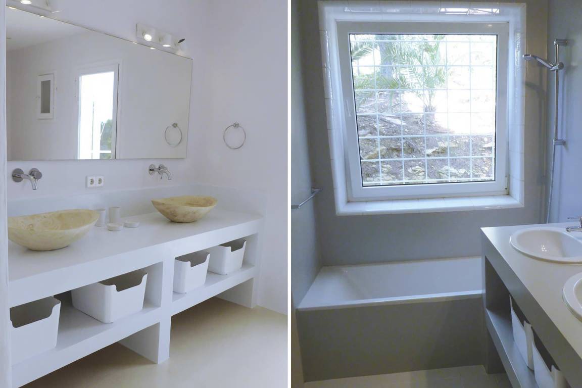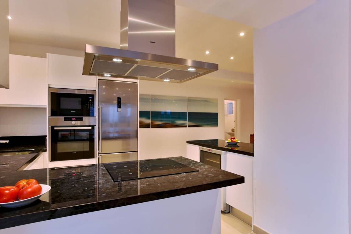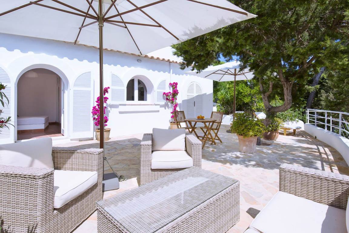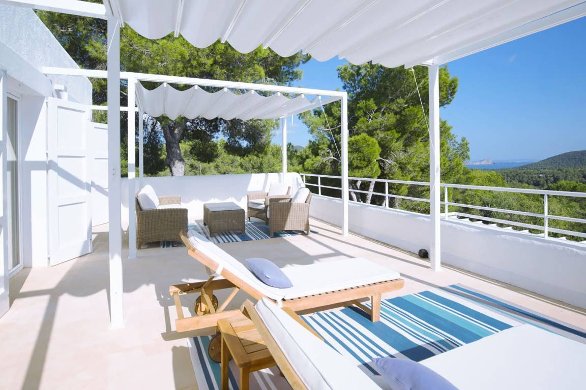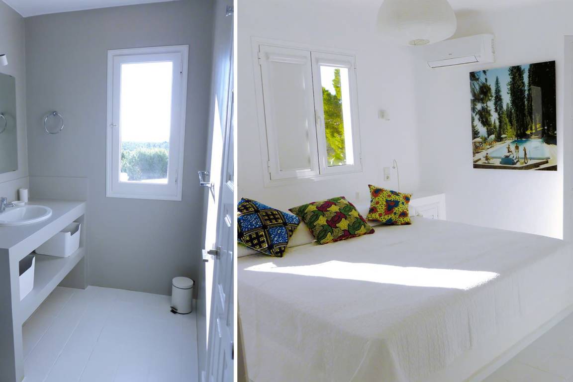 Die Villa umfasst insgesamt mehrere Geschosse, bietet Platz für bis zu 16 Gäste und verfügt über 8 Schlafzimmer und 9 Bäder. Die Schlafzimmer sind mit verschiedenen Bettkonfigurationen ausgestattet, darunter Doppelbetten und Einzelbettanordnungen. Die Bäder sind über die gesamte Immobilie verteilt und ermöglichen bequemen Zugang von allen Schlafbereichen. Die Wohnräume sind großzügig gestaltet und gehen fließend ineinander über. Von der Immobilie sind Meerblicke sichtbar. Der Außenbereich verfügt über einen privaten Swimmingpool und einen separaten Essbereich im Freien mit ausgestatteter Küche.