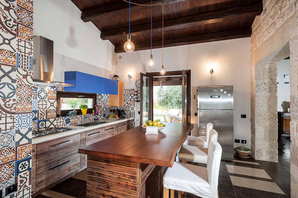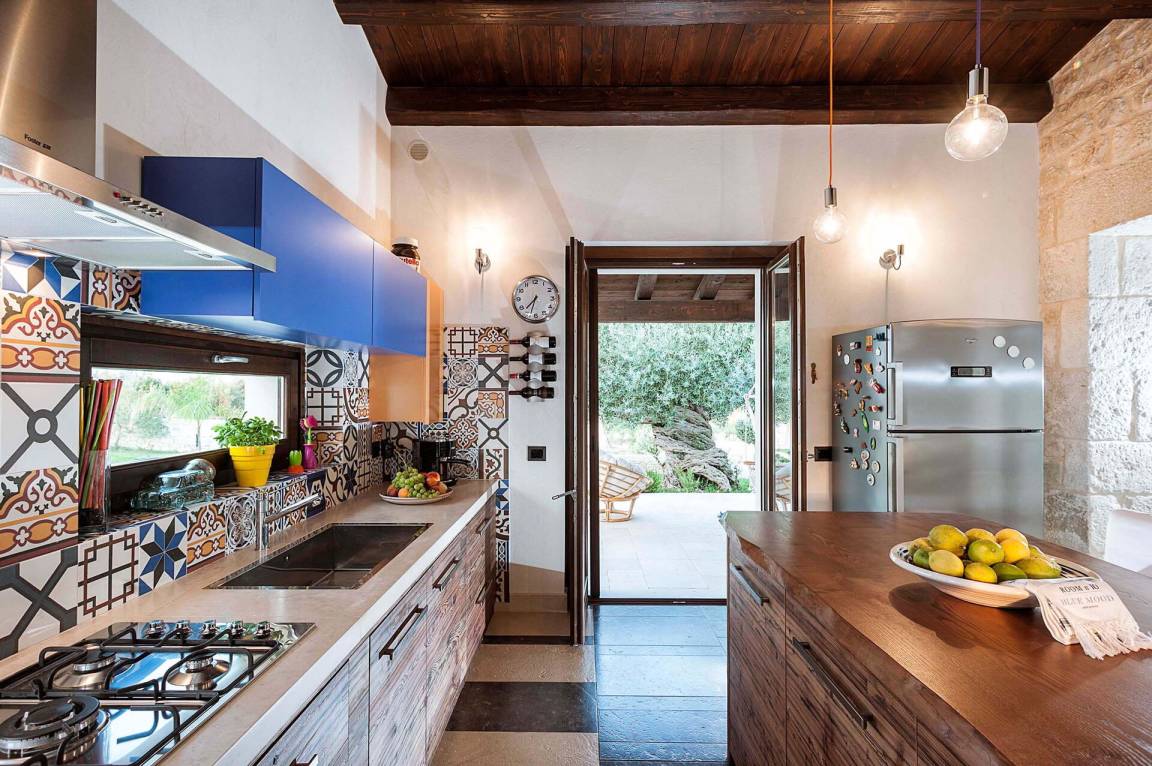 Küche: gut ausgestattete Küche, Esstisch, Spülmaschine, Kühlschrank, Tiefkühler, Mikrowelle, Ofen, Toaster, Bügeleisen, Italienische Kaffeemaschine, Amerikanische Kaffeemaschine, Waschmaschine, WiFi Internet, Internet, Fliegengitter, Kinderhochstuhl, Rauchmelder, CO2 Detektor, Ausgang auf die Veranda.