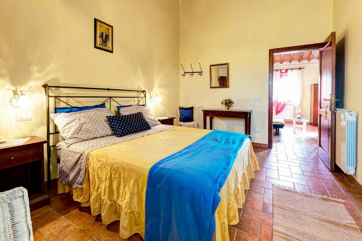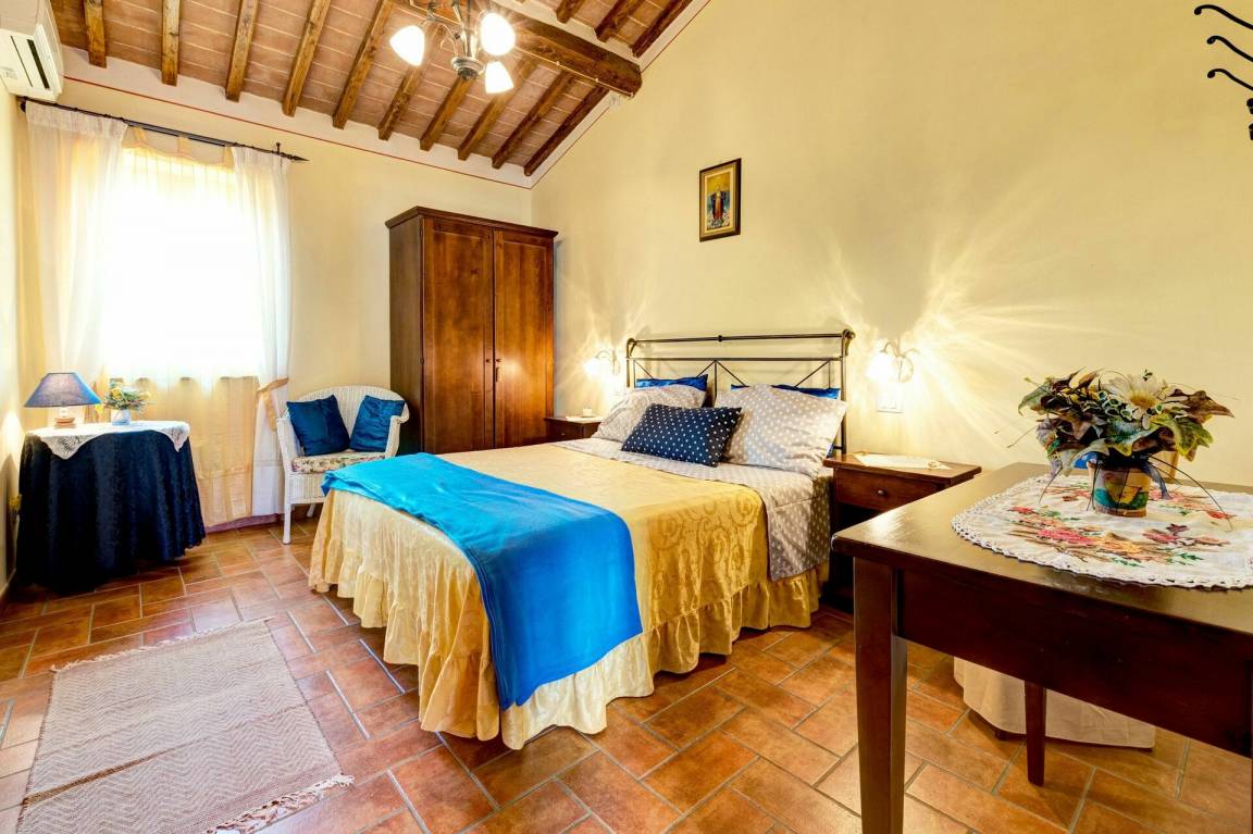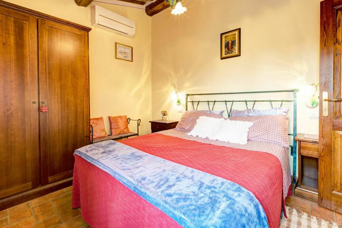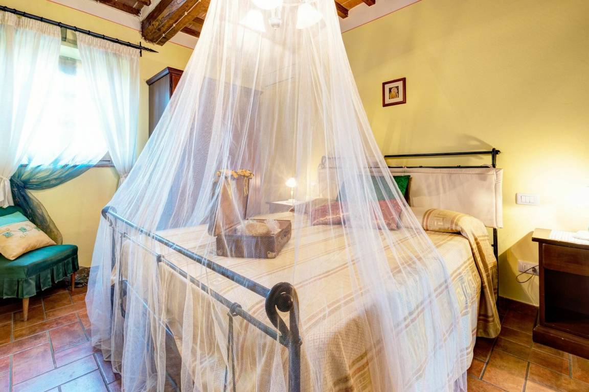 Schlafzimmer: Doppelbett, WiFi Internet, Klimaanlage, Fliegengitter, TV, Sessel, Ausgang auf den Garten.