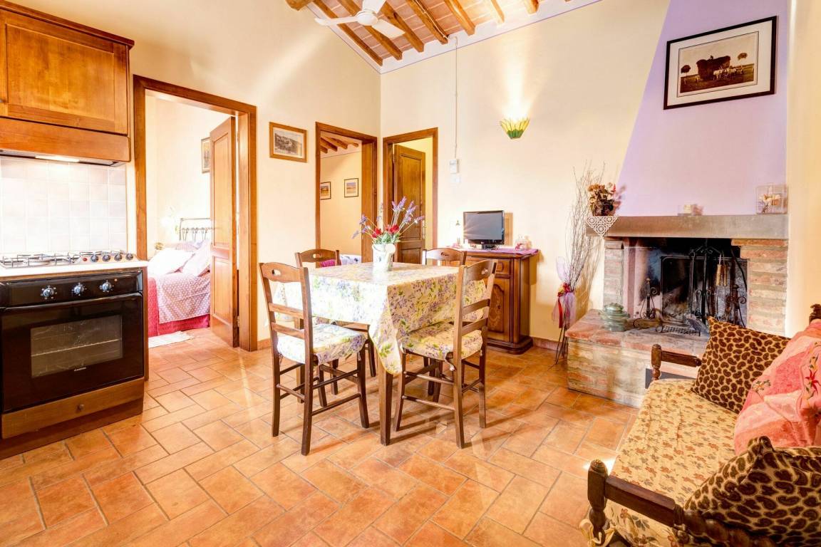 Wohnküche 2: gut ausgestattete Küche, Esstisch (Personen: 5), Kühlschrank, Tiefkühler, Herd, Ofen, Toaster, Italienische Kaffeemaschine, Amerikanische Kaffeemaschine, Sofa, Kamin, WiFi Internet, Fliegengitter.
