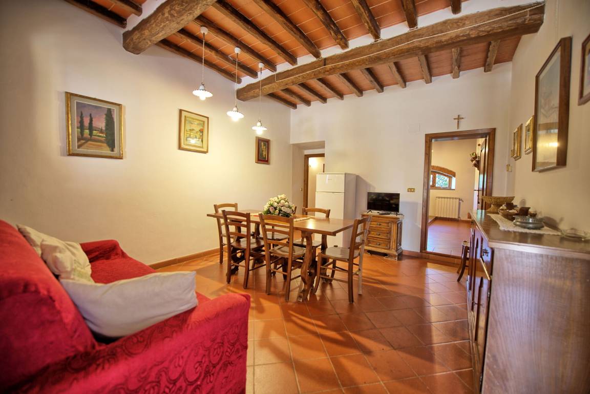 Erdgeschoss: großes Wohnzimmer mit Terrakottaböden, sehr geräumige Küche (Kühlschrank, Herd, Mikrowelle), Badezimmer mit Dusche, 3 Doppelzimmer.