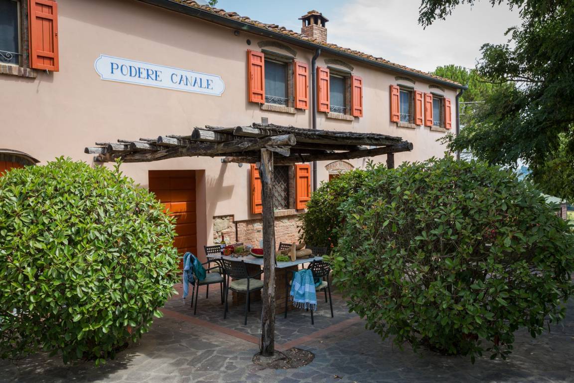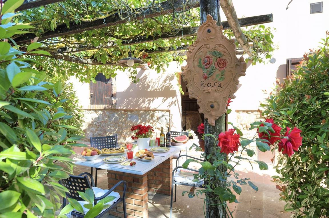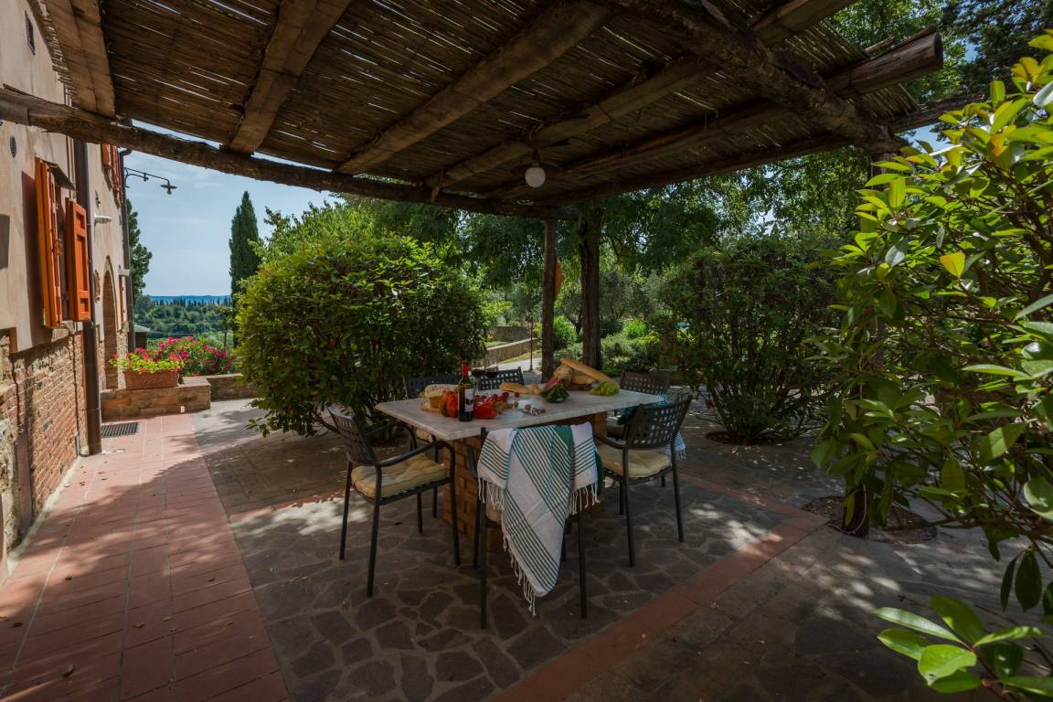 Private mit Stühlen und Tisch ausgestattete Laube.
