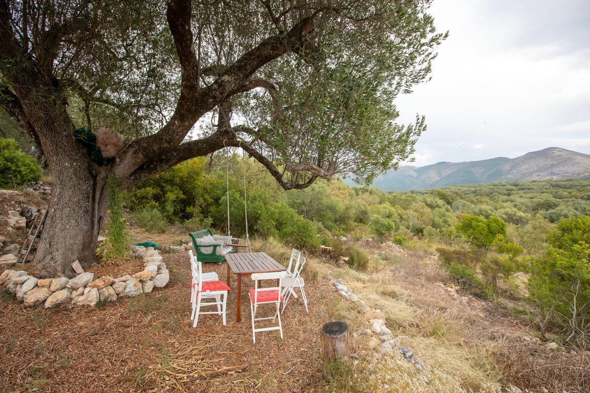 Vor dem Haus erstreckt sich eine lange und leicht terrassierte Meerblickterrasse. Sie ist sowohl möbliert als auch mit zwei Sonnensegeln versehen. Nutzbar unterhalb der Terrasse ist auch ein kleiner möblierter Bereich unter einem alten, majestätischen Olivenbaum. Hier kann man einfach die Seele baumeln lassen und sich unermüdlich an dem grandiosen Küstenpanorama Camerotas ergötzen.